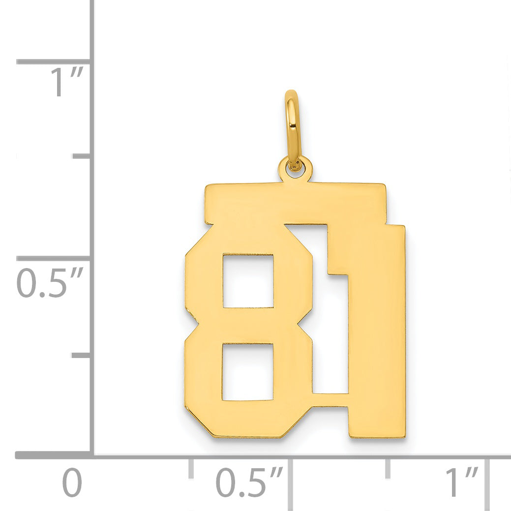 Perfect for adding a personalized detail to your look or a thoughtful gift for a loved one, the 14K Medium Polished Number 81 Charm is an exquisite touch to any jewelry collection.