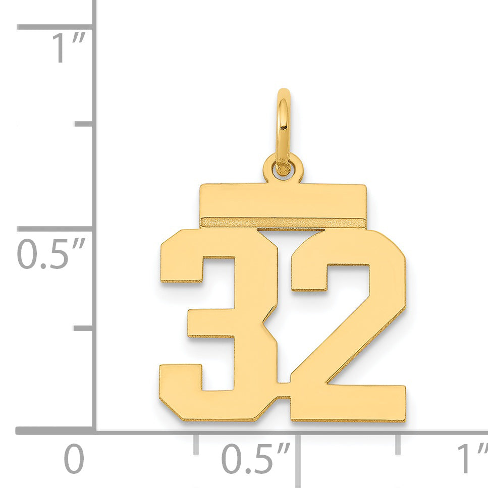 Whether you're commemorating a birthday, jersey number, or a milestone of personal significance, this exquisite 14K Small Polished Number 32 Charm will shine as a symbol of achievement and individuality. Expertly crafted using high-quality 14K gold with a polished finish, this charming piece is as timeless as it is modern, making it the perfect addition to any jewelry collection.