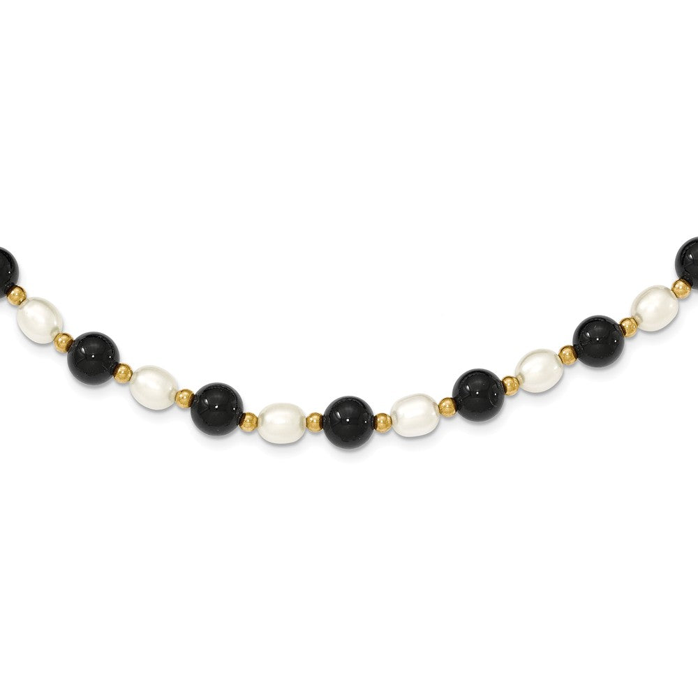14K 6-7mm White Rice Freshwater Cultured Pearl & Onyx Bead Necklace