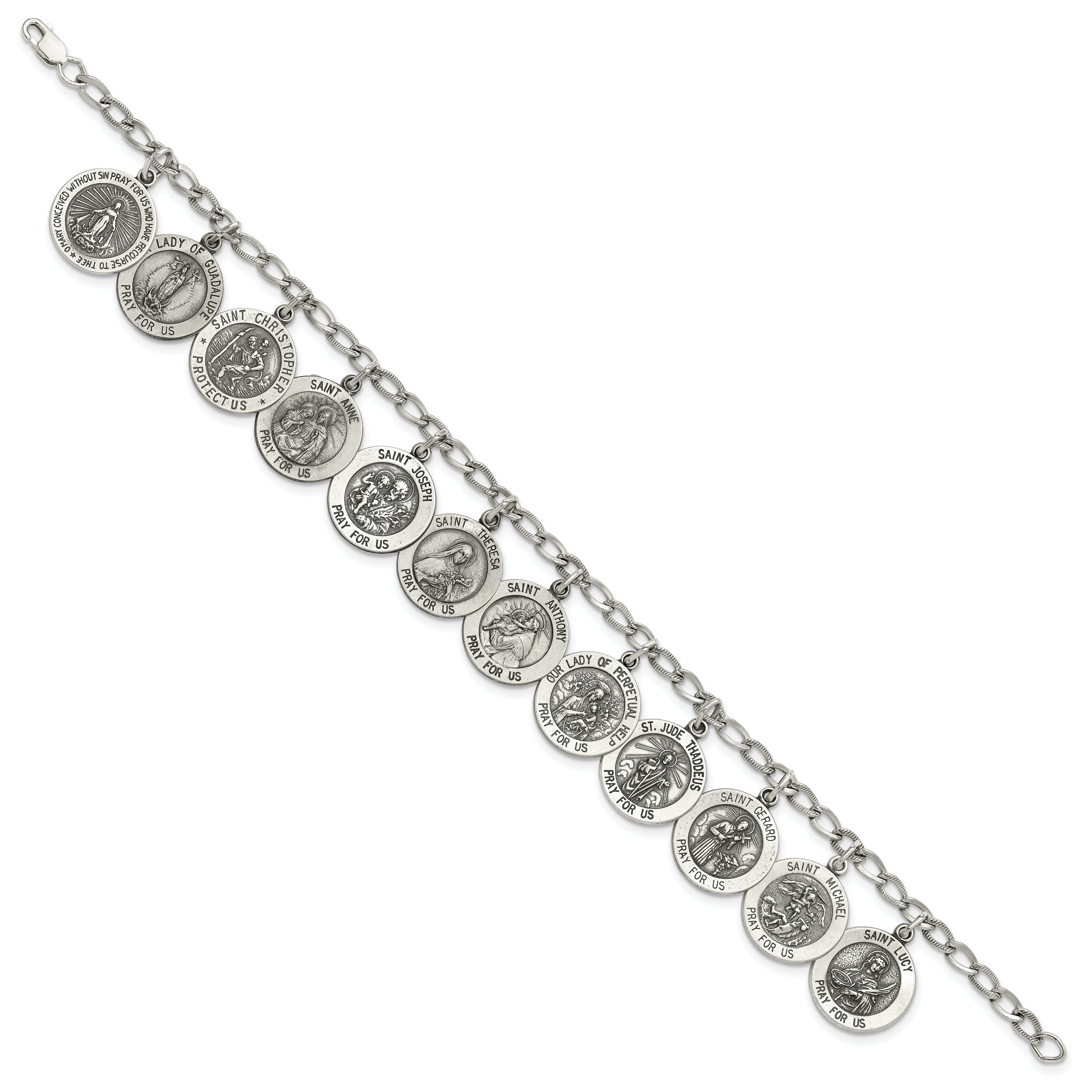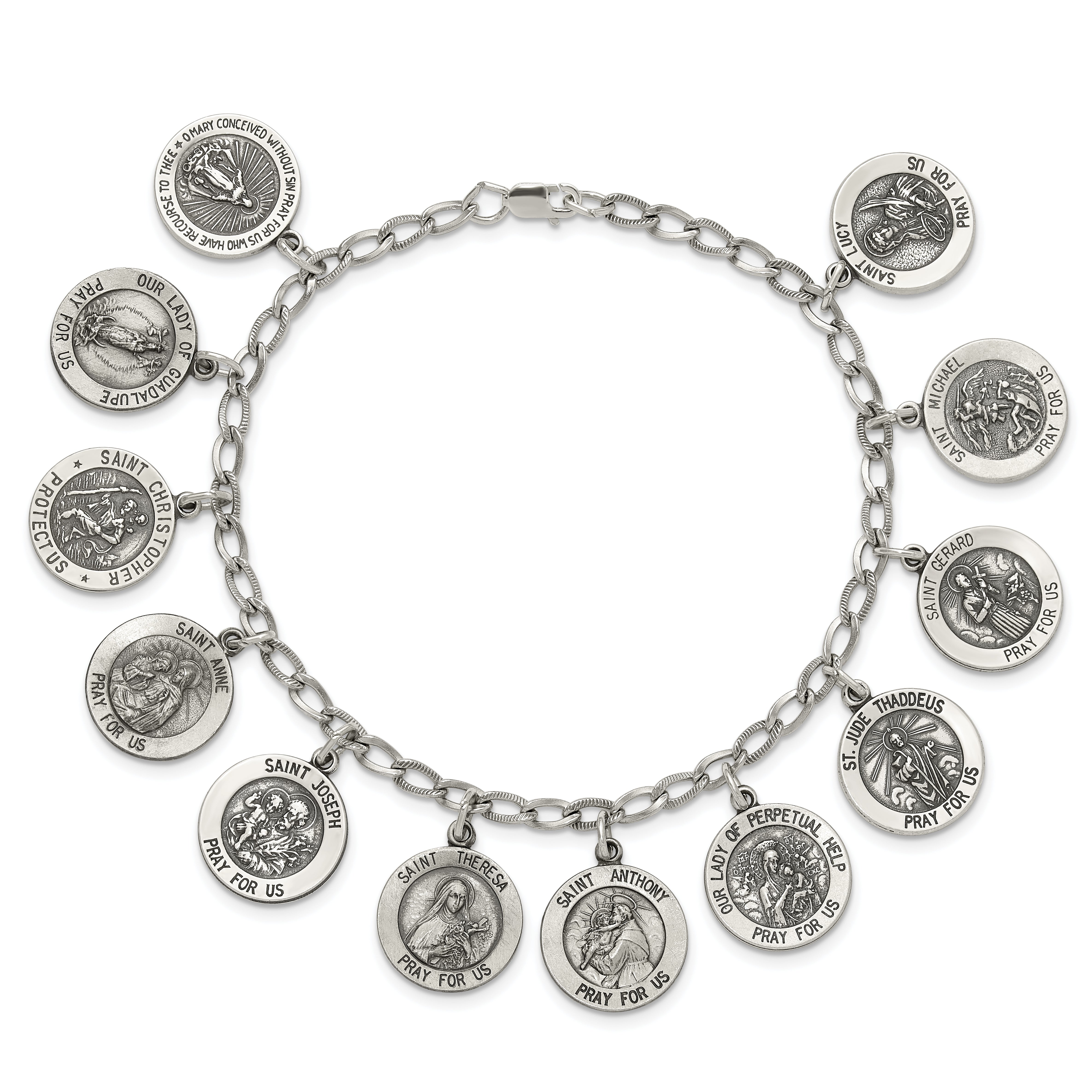 Sterling Silver 12 Saints Antiqued Bracelet with Solid Die-Struck Design – The Gift of Beauty and Meaning