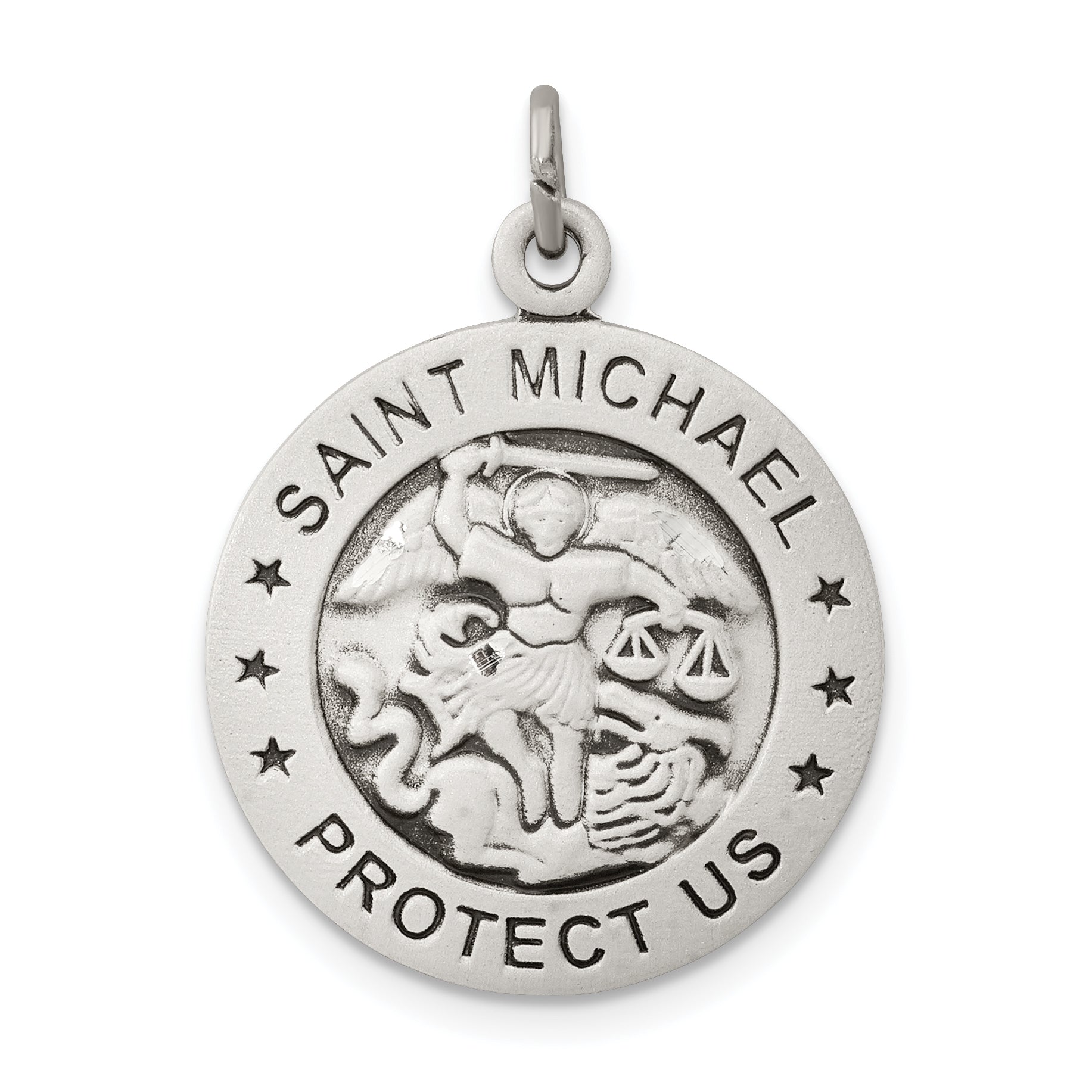 Sterling Silver Antiqued Saint Michael Navy Medal
