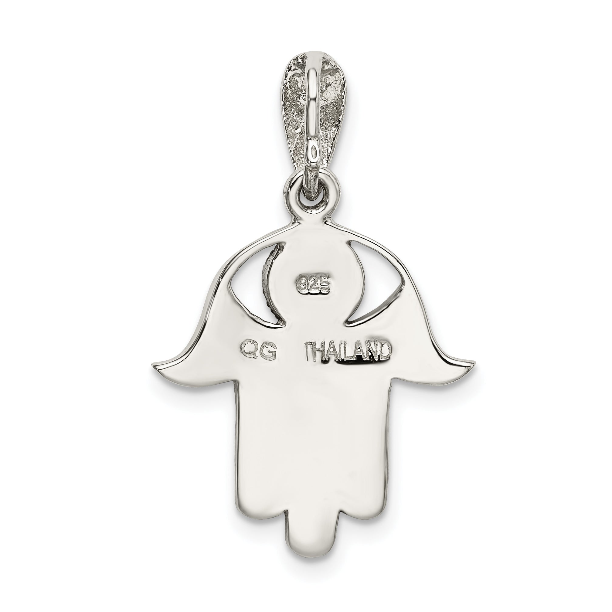 The Chamseh design and the intricate marcasite accents create a stunning contrast, while the solid sterling silver offers lasting quality and durability. Its lightweight feel makes it perfect for everyday wear, while the artisan detailing will effortlessly elevate any outfit—whether you're heading to a special occasion or simply looking to add some sparkle to your day. Complete with a flat back profile for comfortable wear and a sizeable bail to accommodate your favorite chain, this pendant is a true expression of style and meaningful beauty.
