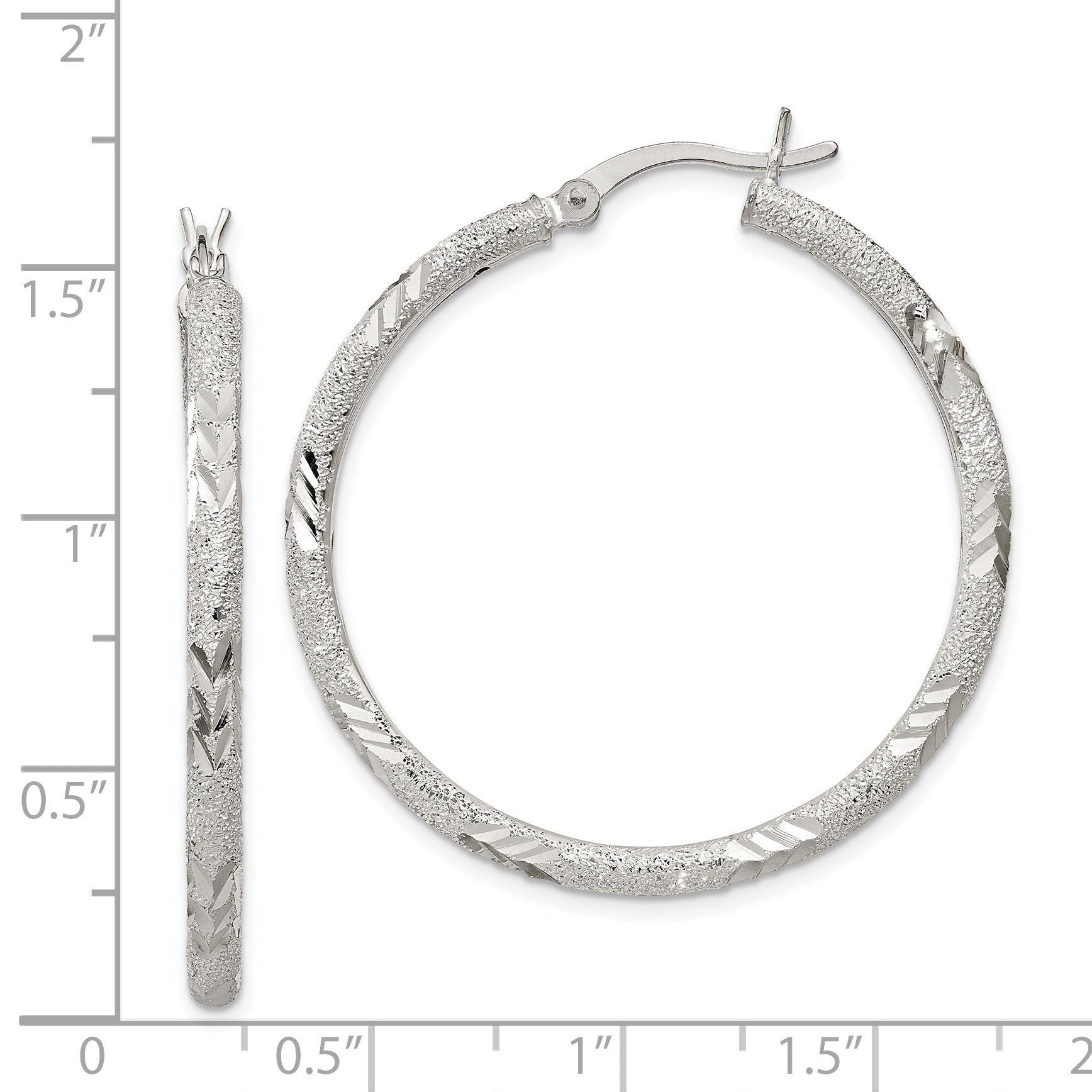 Sterling Silver 2.5mm Diamond-Cut Laser-Cut Hinged Hoop Earrings