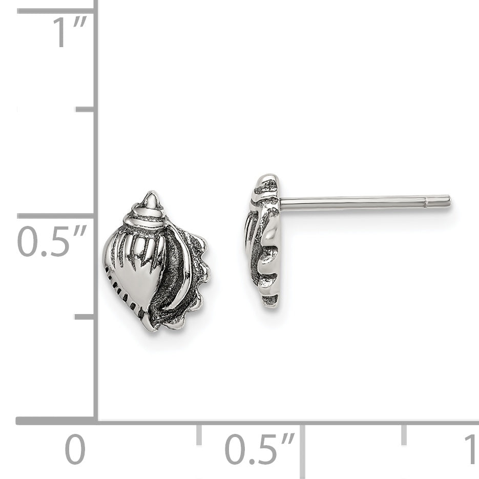 Sterling Silver Polished & Antiqued Sea Shell Post Earrings – Embrace Timeless Elegance