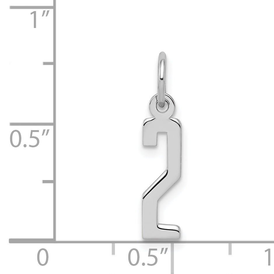 Sterling Silver/Rhodium-plated Elongated Polished Number 2 Charm