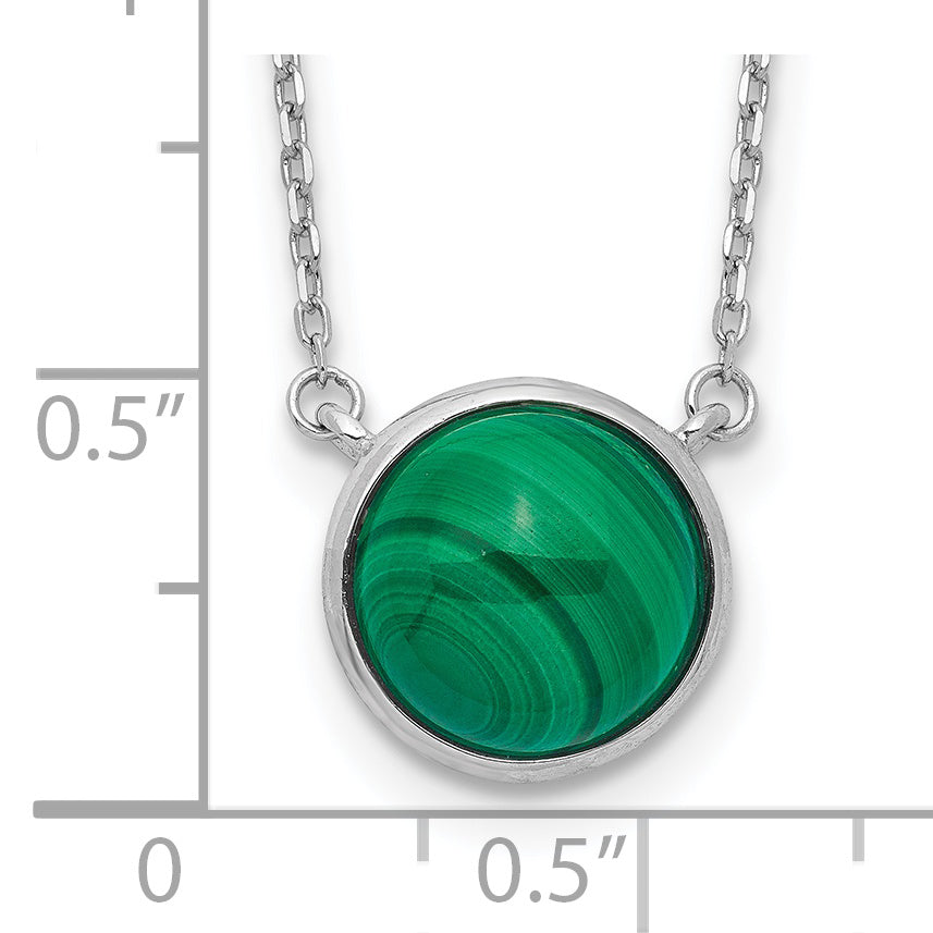 Sterling Silver Rhodium-plated Round Malachite Cabochon Necklace