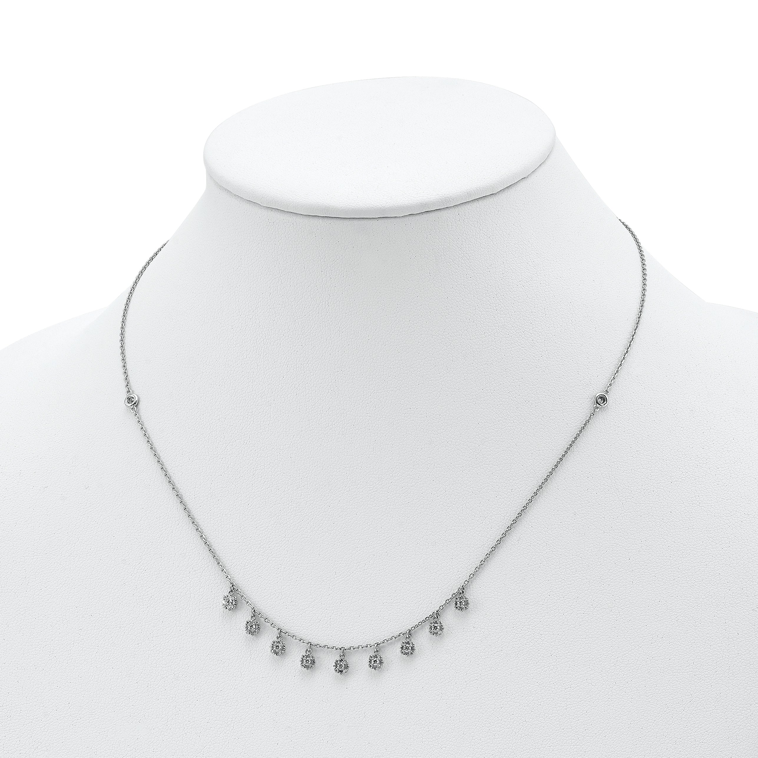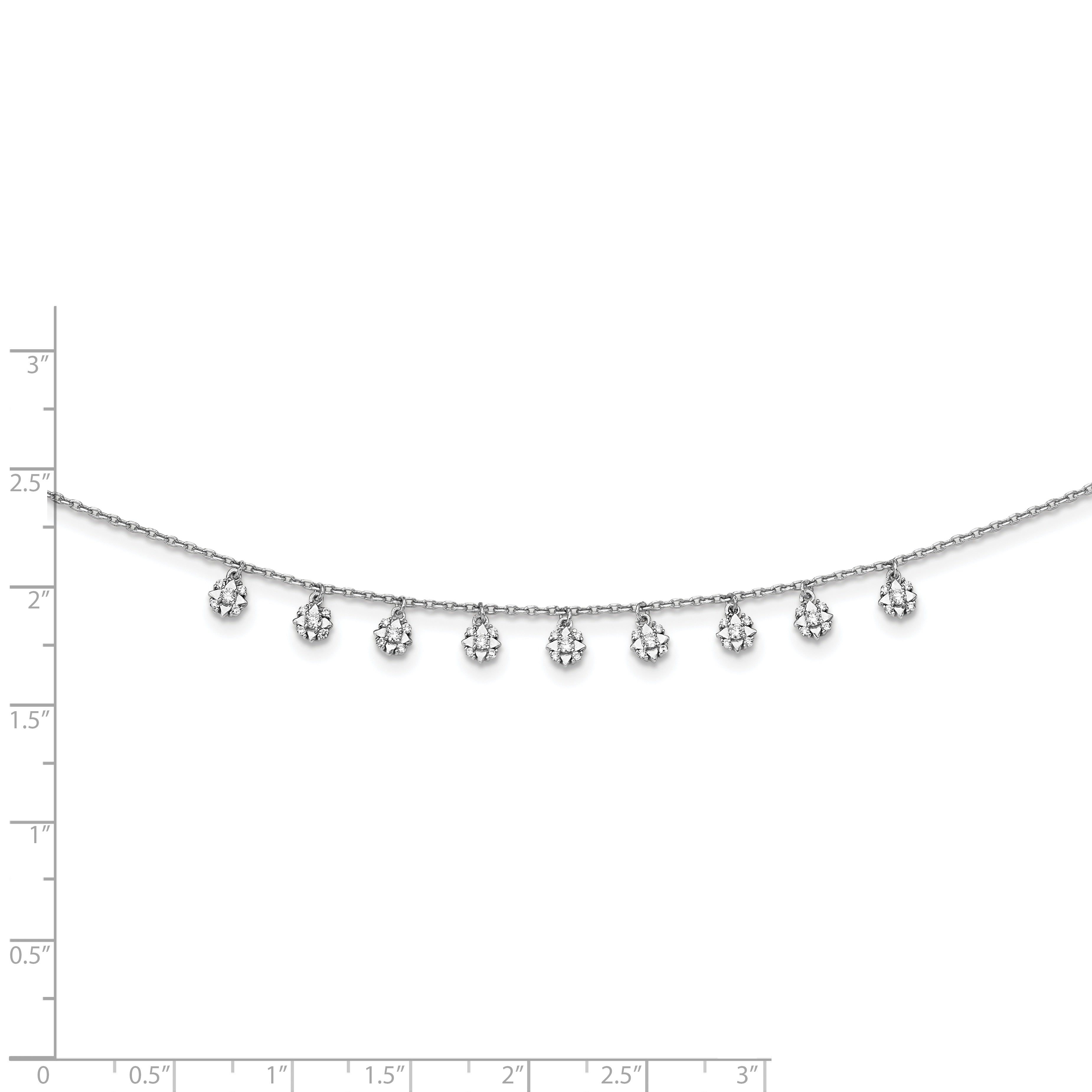 Elevate your look with the stunning Sterling Shimmer CZ Necklace, carefully crafted to radiate beauty and sophistication. Made from premium sterling silver and plated with a luminous layer of rhodium, this 18-inch necklace elegantly combines luxury with durability. Adorned with 48 pristine, round-cut cubic zirconia stones distributed over 11 star-shaped stations, this piece creates a dazzling array of shimmer, making it perfect for both everyday wear and special occasions.