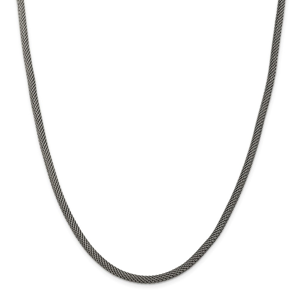 This Sterling Silver 4mm Fancy Antiqued Mesh Necklace is more than just a piece of jewelry—it's an embodiment of elegance, quality, and effortless style. Sophisticated yet understated, it enhances your everyday look or adds that finishing touch for special occasions. Why settle for ordinary when you can own something truly unique and refined?