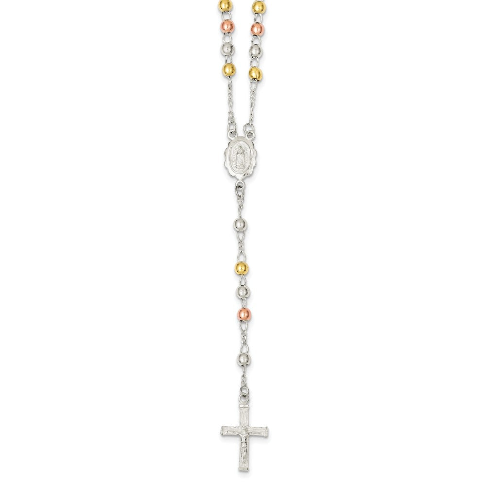 Elevate your faith and fashion with the stunning Sterling Silver Yellow & Rose Flash Gold-plated Rosary Necklace, a timeless statement of devotion and style. Meticulously crafted with sterling silver and enriched with luxurious yellow and rose-tone gold plating, this rosary necklace perfectly blends elegance with spiritual significance. Whether for yourself or as a thoughtful gift, it offers a radiant sheen that symbolizes both faith and beauty.