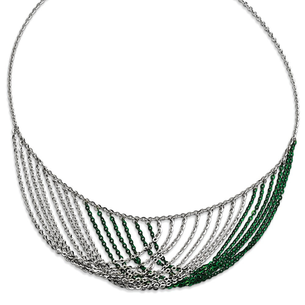 Make a statement. Feel the luxury. Add this Sterling Silver Rhodium & Green Plated Multi Strand Necklace to your collection today and let it elevate your personal style every time you wear it.