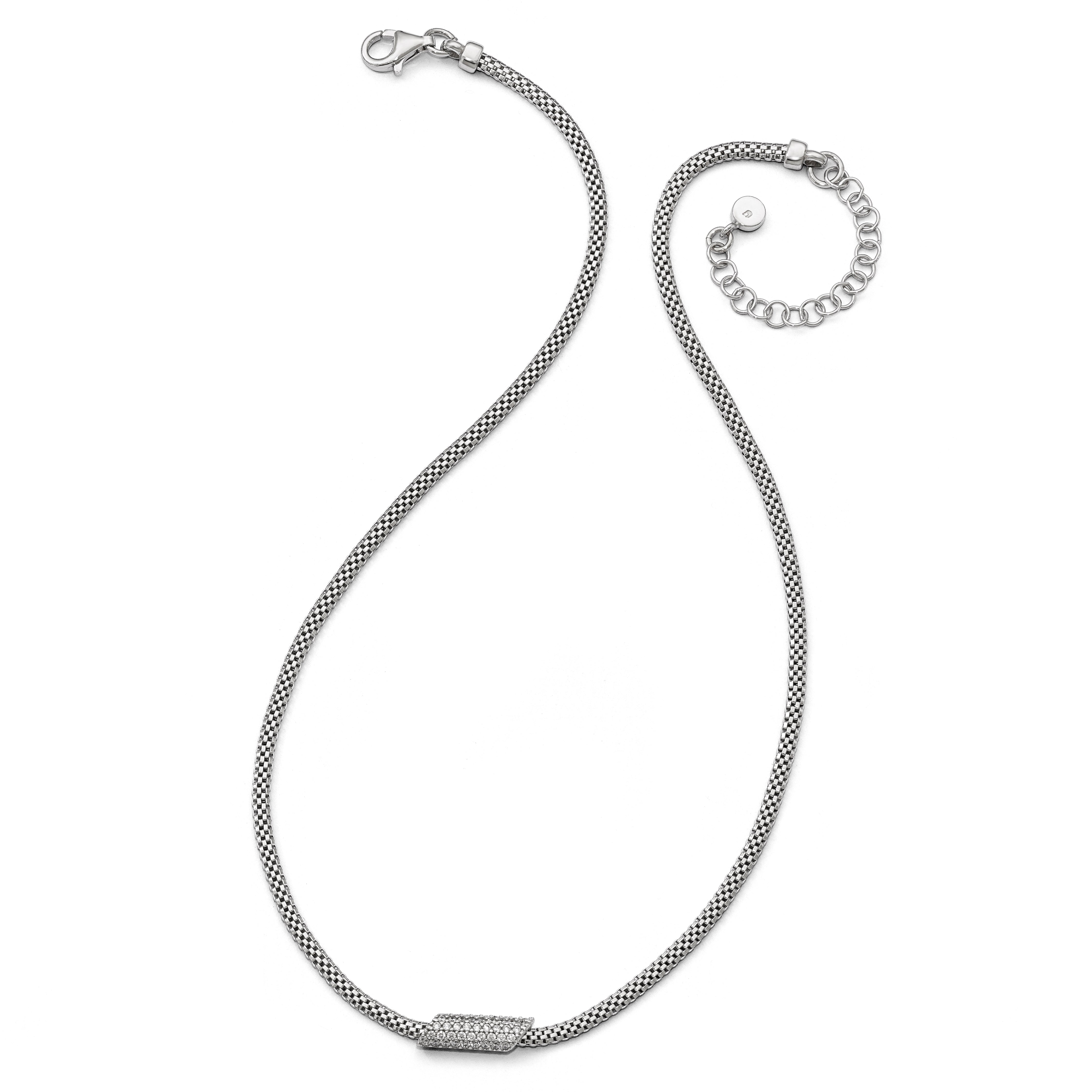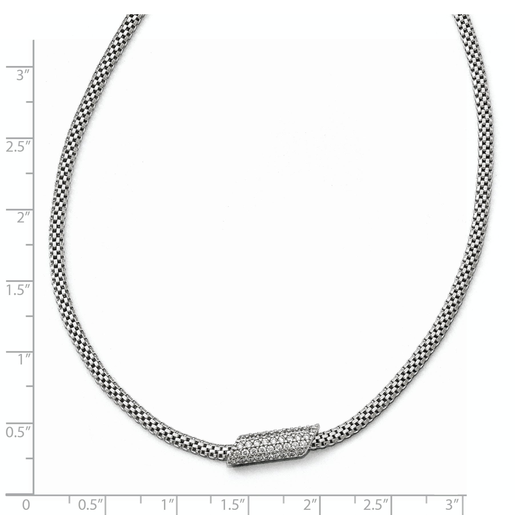 Elevate your elegance and add a touch of shimmer to your jewelry collection. This timeless Sterling Silver Rhodium-Plated CZ Necklace not only makes a statement but also becomes an instant classic in your wardrobe. Perfect for gifting or for treating yourself to something special, this necklace is sure to turn heads.