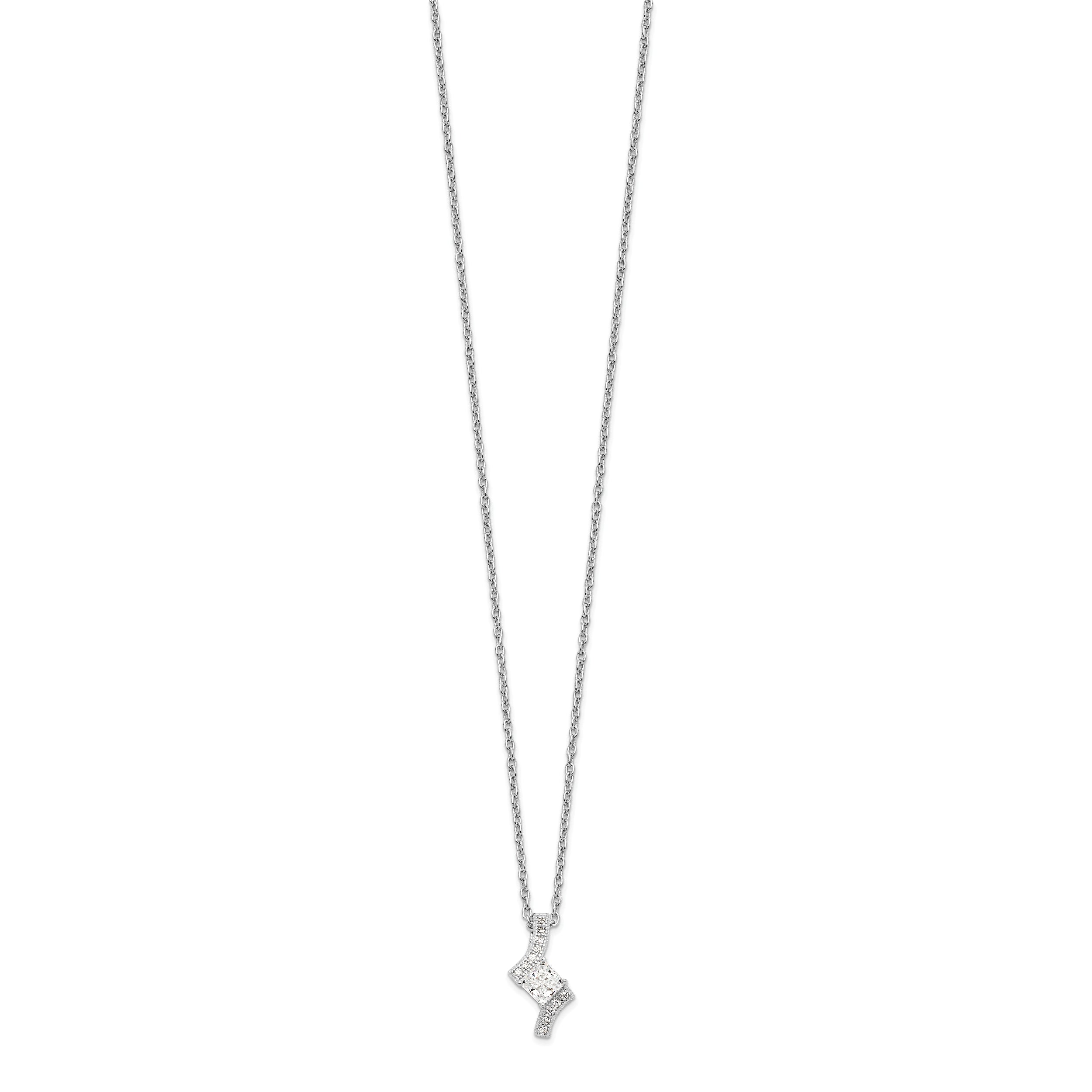 Brilliant Embers Sterling Silver Rhodium-plated 13 Stone 18-Inch Micro Pavé CZ Necklace with 2-Inch Extender