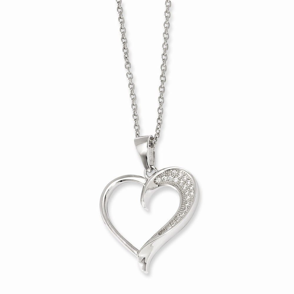Sterling Silver & CZ Brilliant Embers Polished Heart Necklace