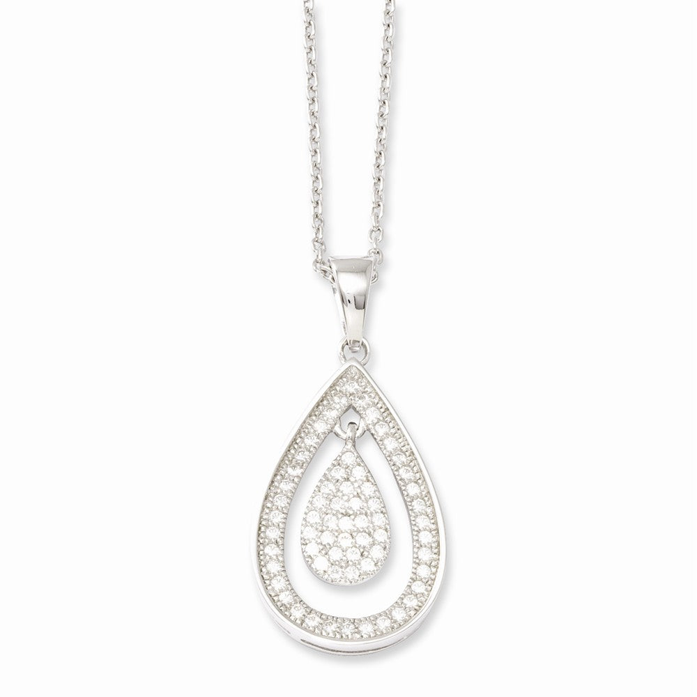 Sterling Silver & CZ Brilliant Embers Polished Teardrop Necklace