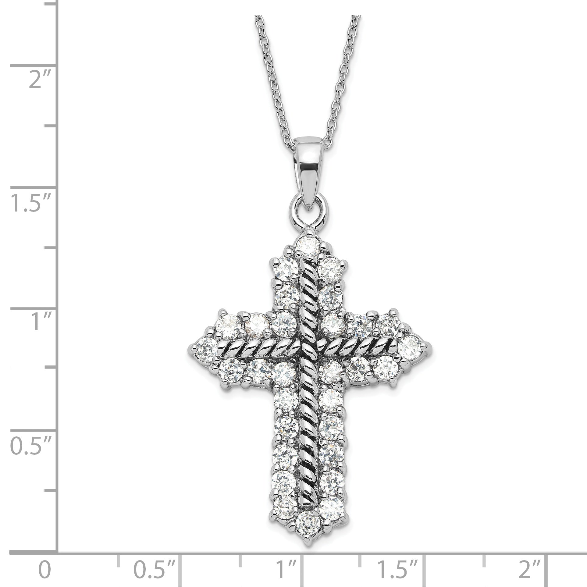 Sentimental Expressions Sterling Silver Polished & Antiqued CZ Eternal Perspective Cross Necklace