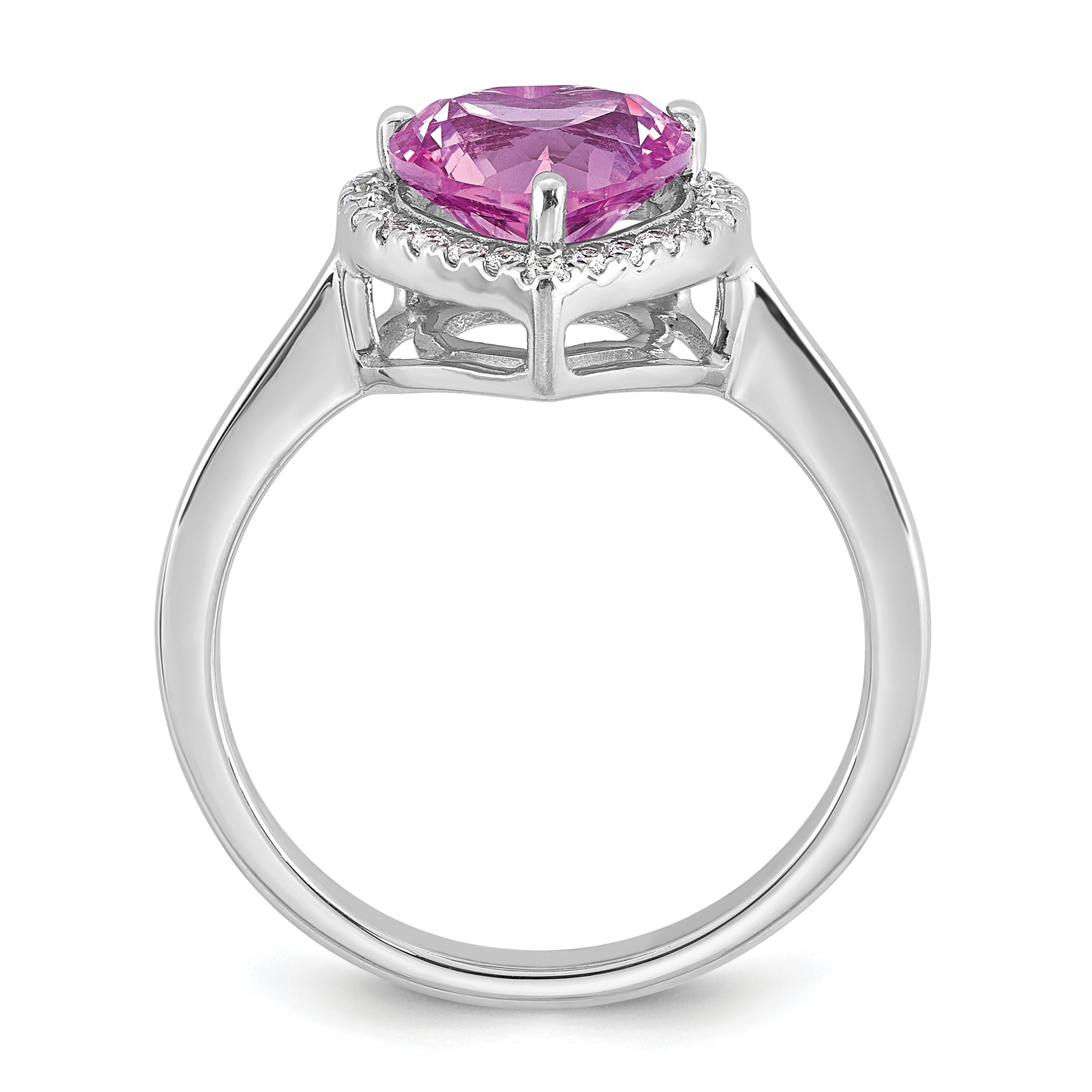 14k White Gold 1/6 carat Lab Grown Diamond VS+ F+ and Natural Pink Sapphire Heart Ring