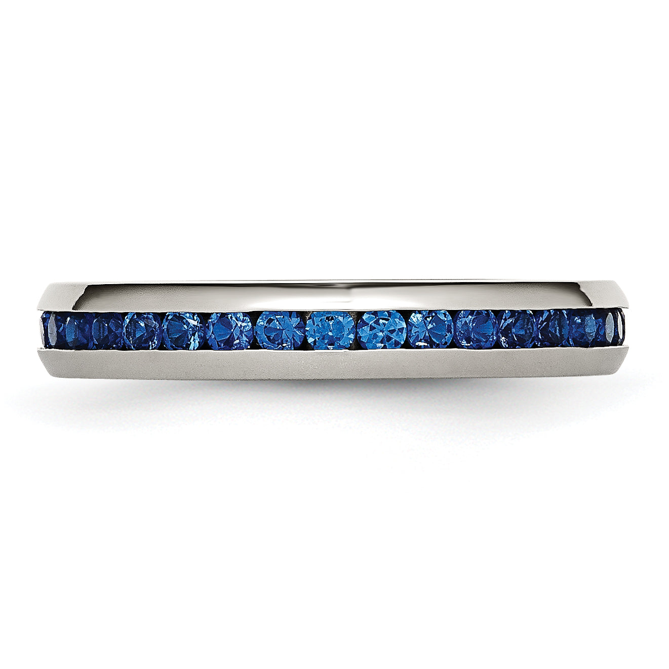 StainleSterling Silver Steel Polished 4mm September Blue CZ Ring