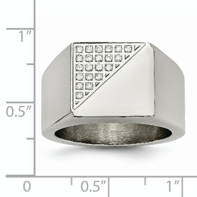 Stainless Steel Polished with Crystal Signet Ring