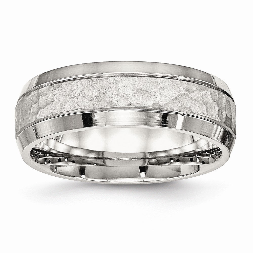 Stainless Steel Brushed and Polished Hammered 7.50mm Band