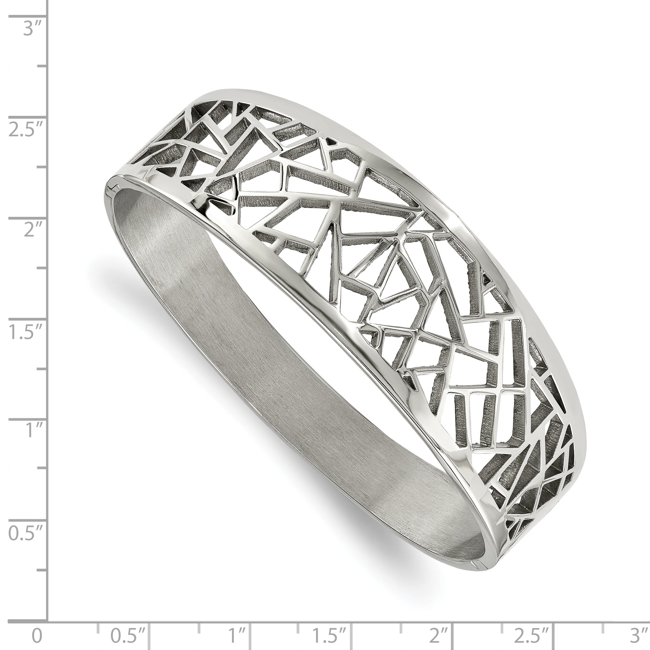 Stainless Steel Polished Geometric Cut-out Hinged Bangle