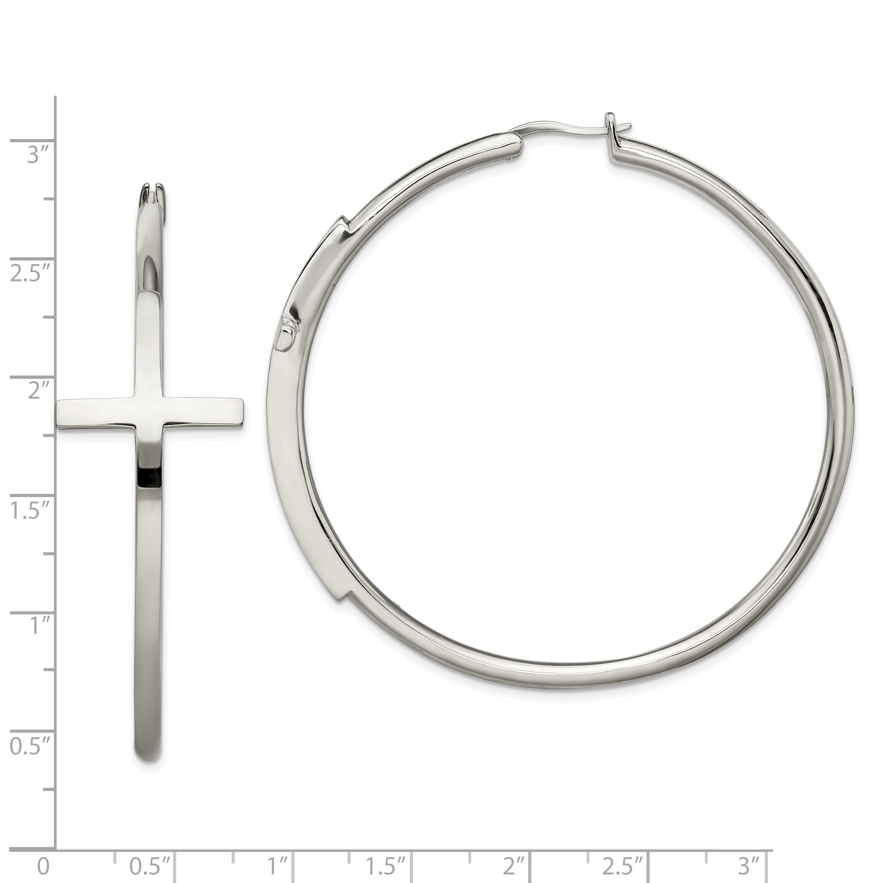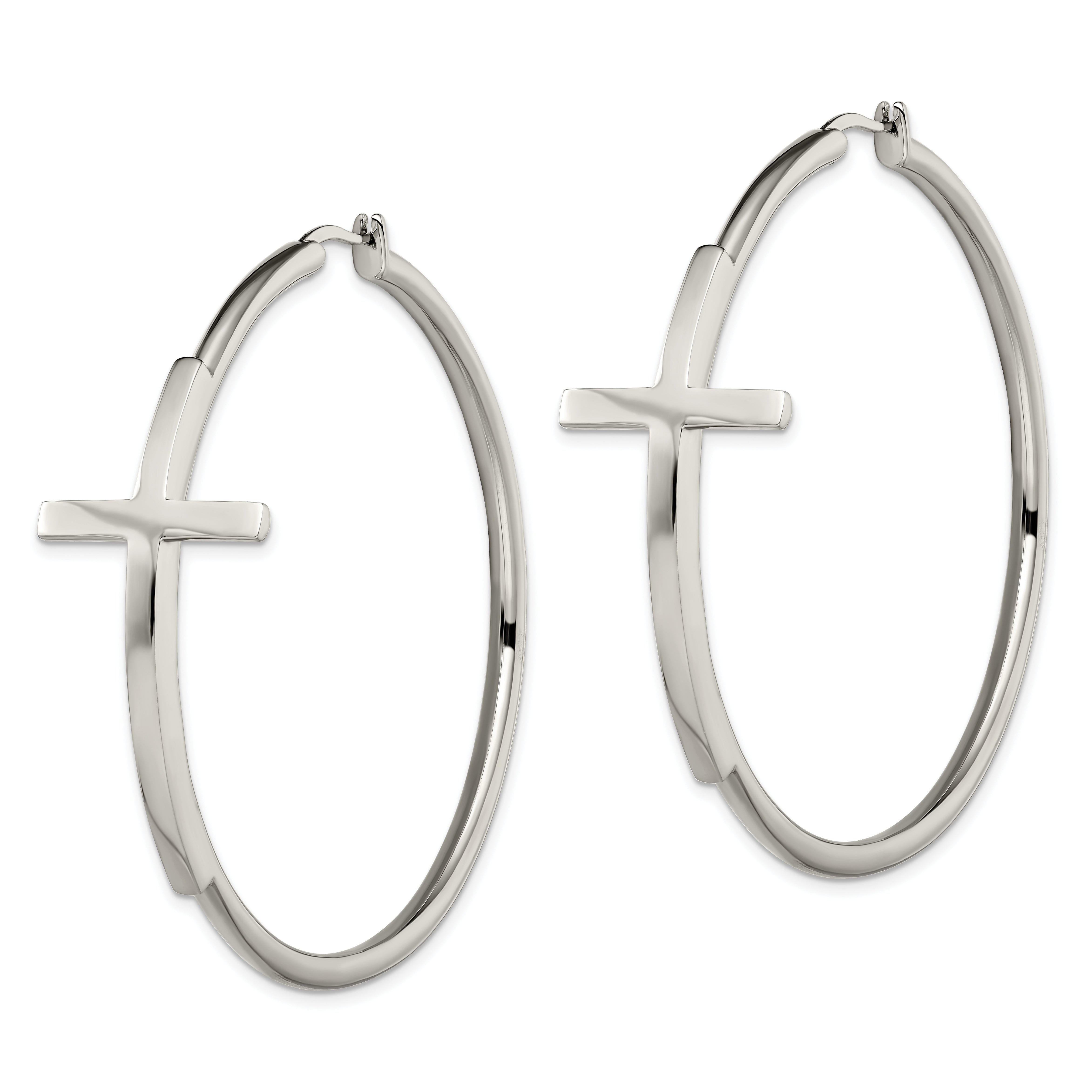 Chisel Stainless Steel Polished Large Cross Hoop Earrings