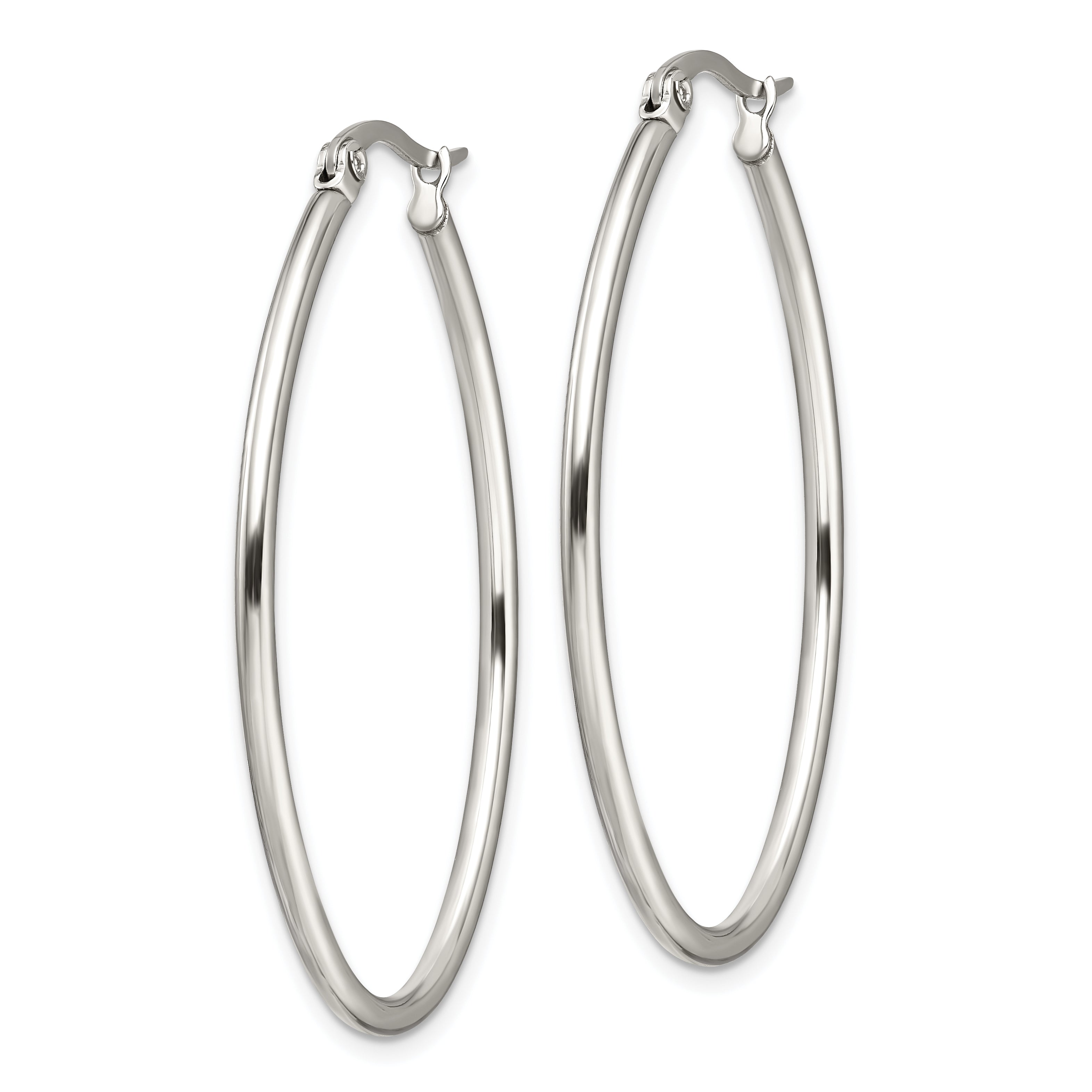 Chisel Stainless Steel Polished 30mm Diameter 2mm Oval Hoop Earrings
