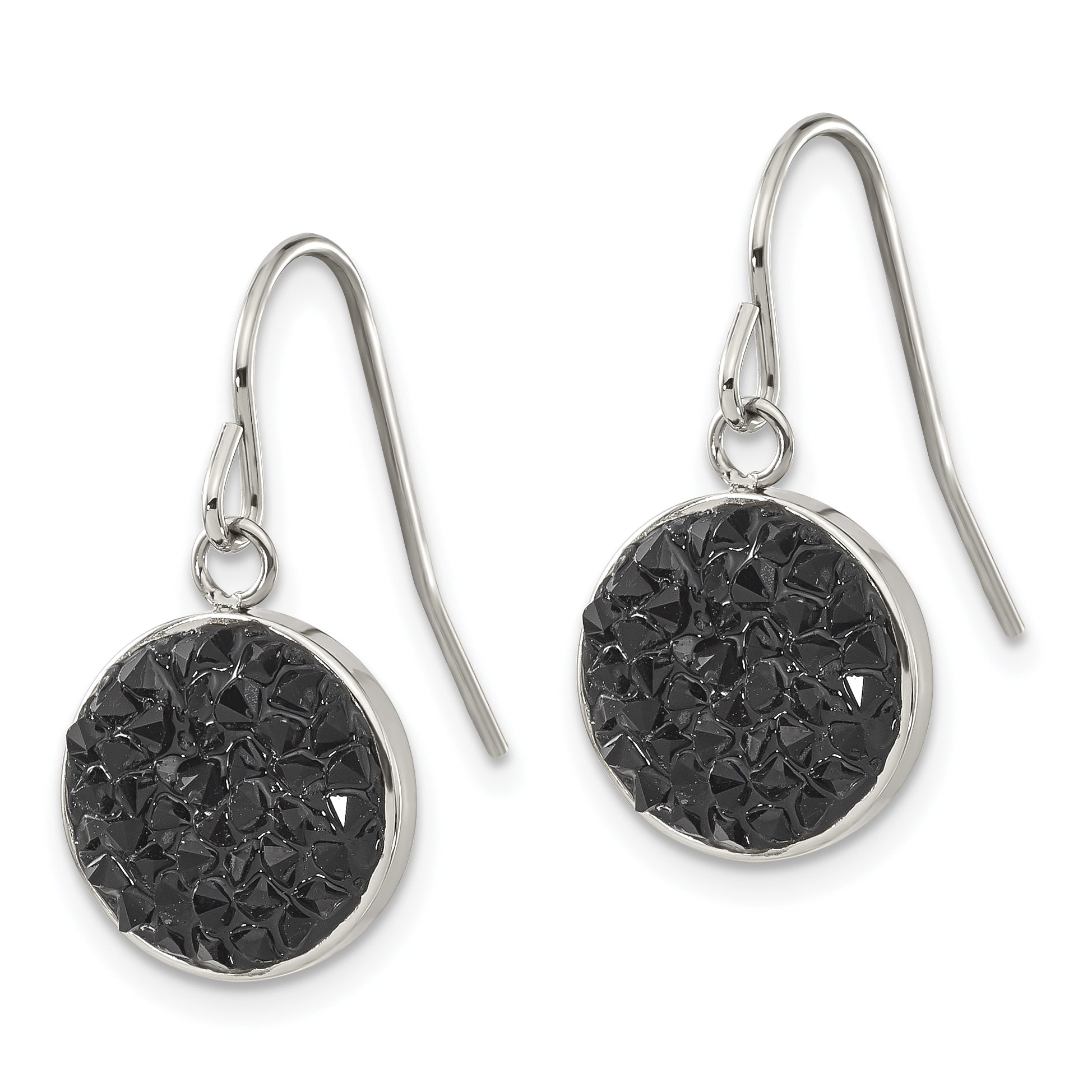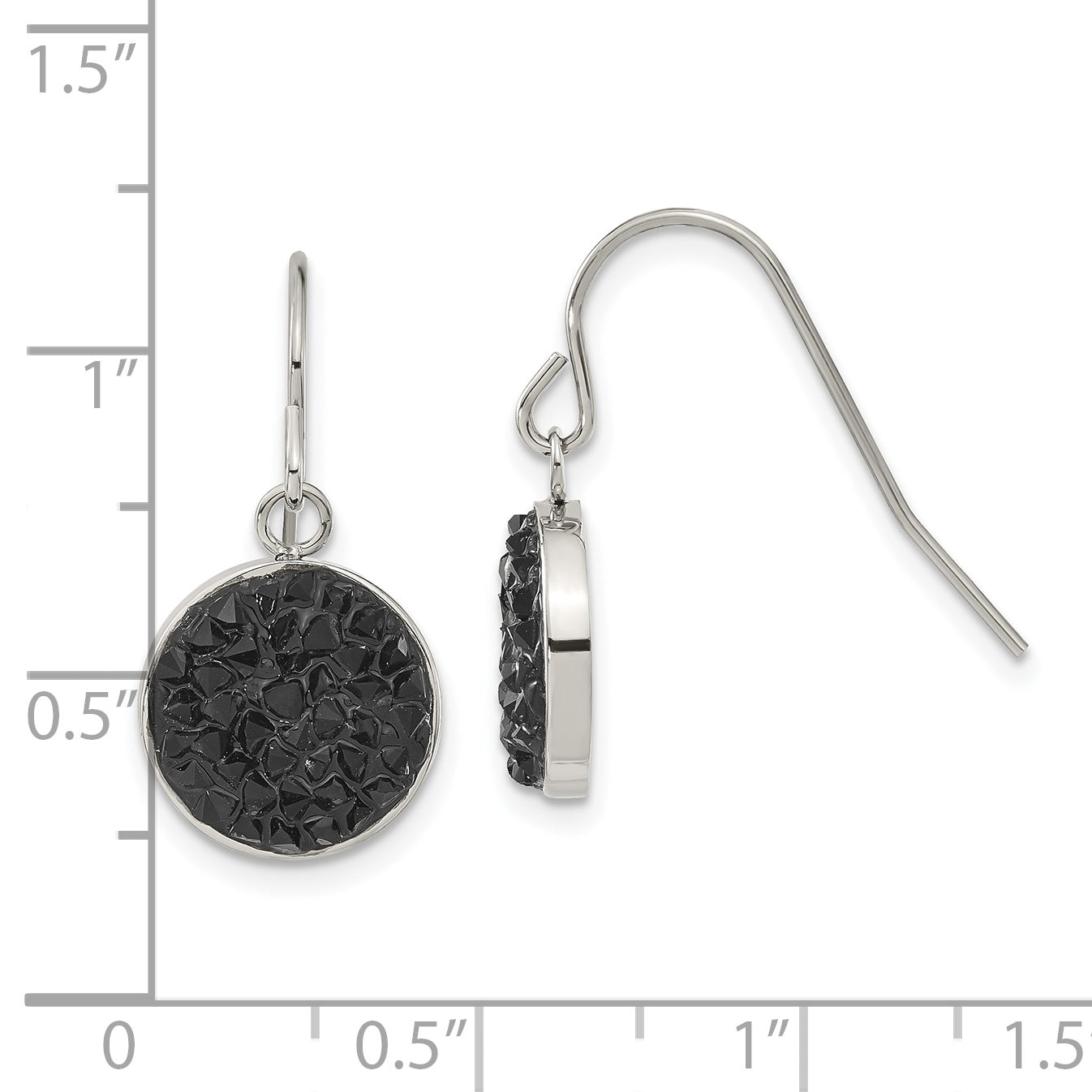 Chisel Stainless Steel Polished Black Crystal Circle Dangle Earrings