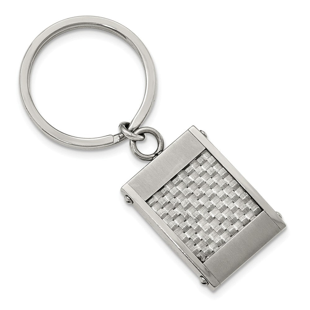 Chisel Stainless Steel Brushed and Polished Grey Carbon Fiber Inlay Key Ring