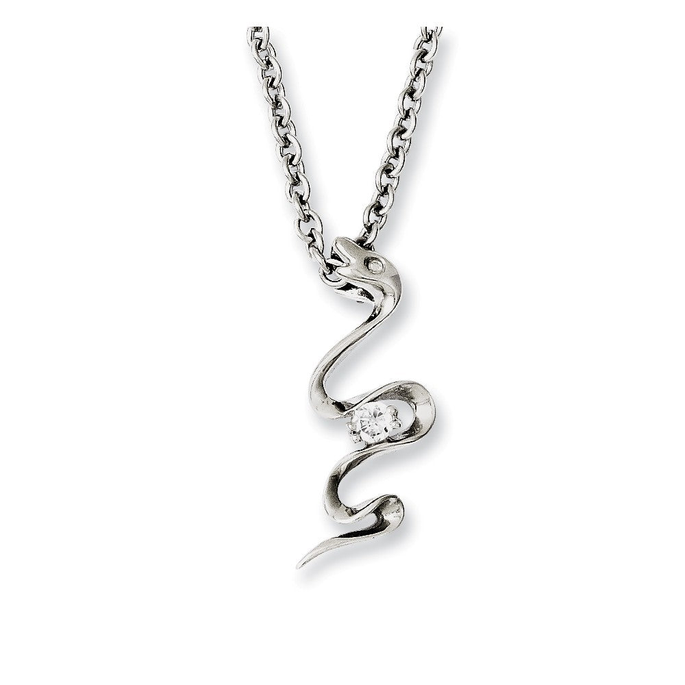 Stainless Steel Polished Snake Swirl Necklace with Cubic Zirconia
