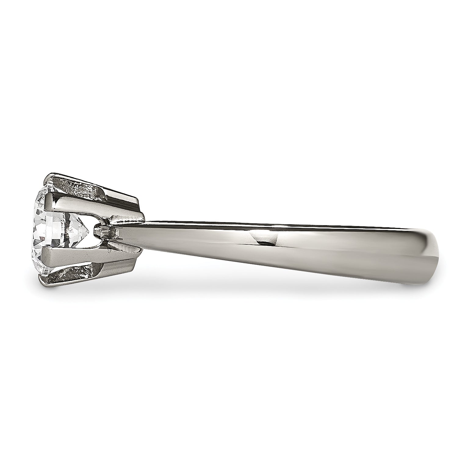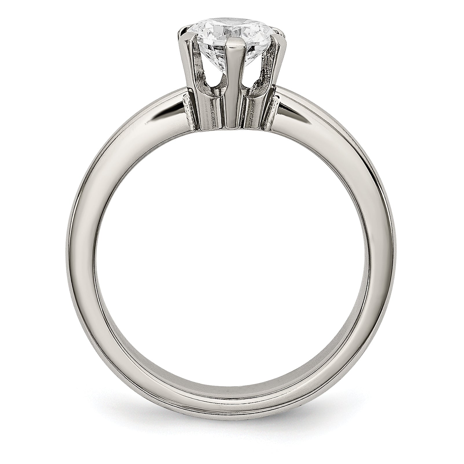 Elevate your style with this stunning Titanium CZ Ring, a perfect blend of modern sophistication and timeless beauty. Crafted from premium titanium, this ring exudes durability without compromising on elegance. The centerpiece of this striking design is a round, brilliant-cut Cubic Zirconia (CZ) stone, set in a prong setting that maximizes its sparkle. Whether you're dressing up for a special occasion or adding a touch of flair to everyday wear, this sleek 3mm band offers comfort and effortless style.