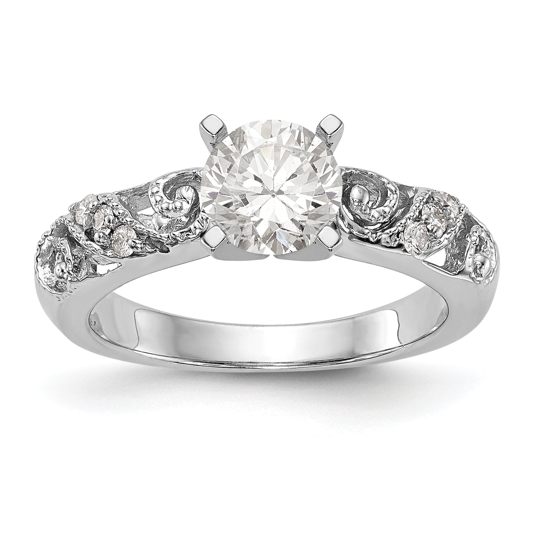 Item Specification: Material: Primary - Purity:14K Finish:Polished Stone Type_1:Center Stone Mounting(s) Stone Type_2:Diamond Stone Quantity_1:1 Stone Quantity_2:6 Plating:Rhodium Band Width:4 to 2 mm (tapered) Stone Weight_1:1 ct Stone Weight_2:0.012 ct...