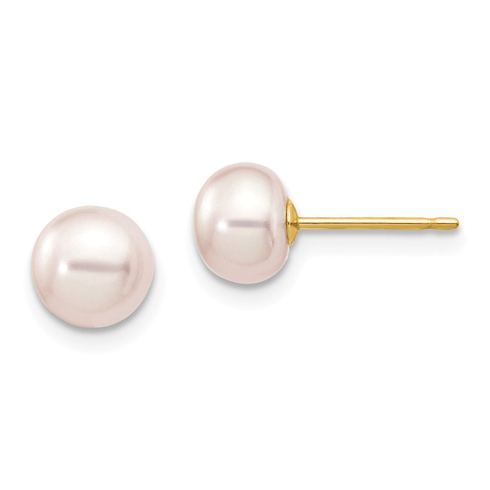 14K 6-7mm Purple Button Freshwater Cultured Pearl Stud Post Earrings