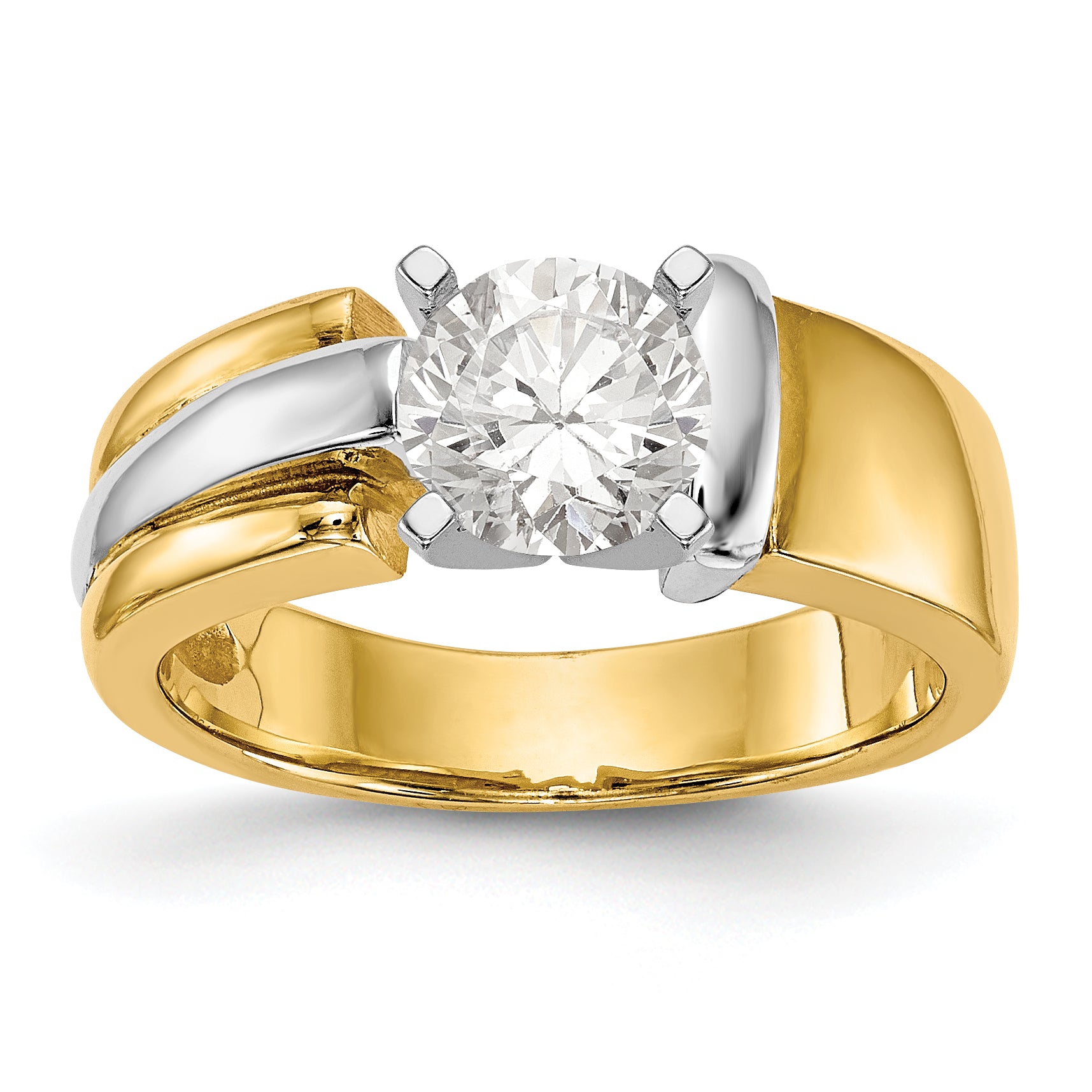 Item Specification: Material: Primary - Purity:14K Finish:Polished Stone Type_1:Center Stone Mounting(s) Stone Quantity_1:1 Plating:Rhodium Band Width:5.7 to 3.2 mm (tapered) Stone Weight_1:1 ct Size (Minimum):5 Size (Maximum):9 Sizing Adjustment Increment:0.25...