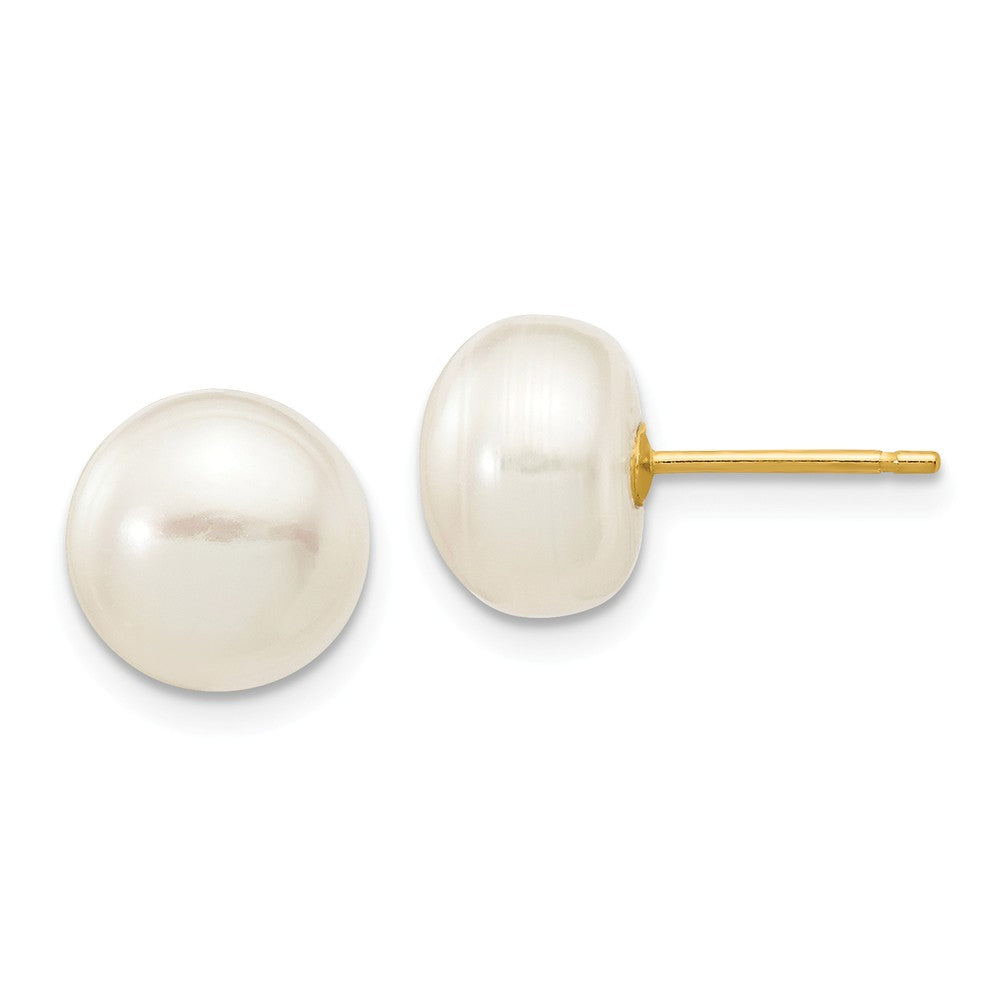 14K 8-9mm White Button Freshwater Cultured Pearl Stud Post Earrings