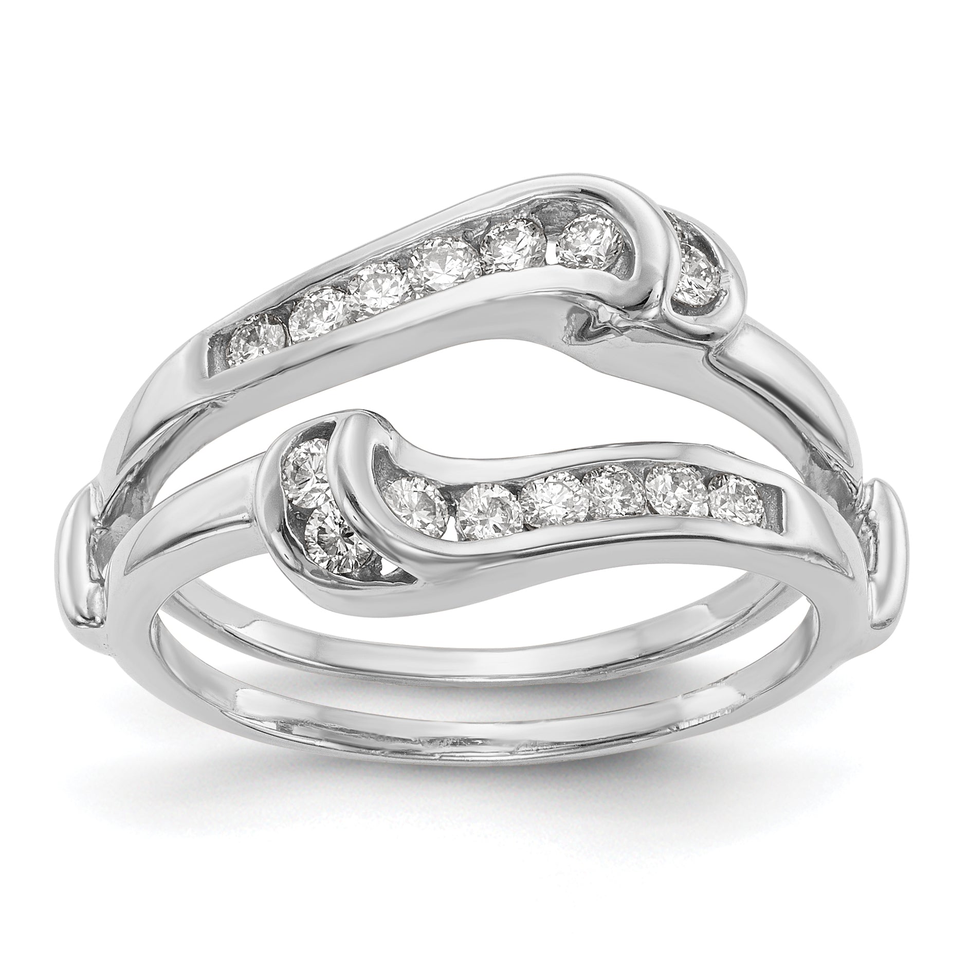 Item Specification: Material: Primary - Purity:14K Finish:Polished Stone Type_1:Diamond Stone Type_2:Diamond Stone Quantity_1:12 Stone Quantity_2:4 Plating:Rhodium Band Width:2.6 to 6.6 mm (tapered) Stone Weight_1:0.0225 ct Stone Weight_2:0.015 ct Size (Minimum):6...