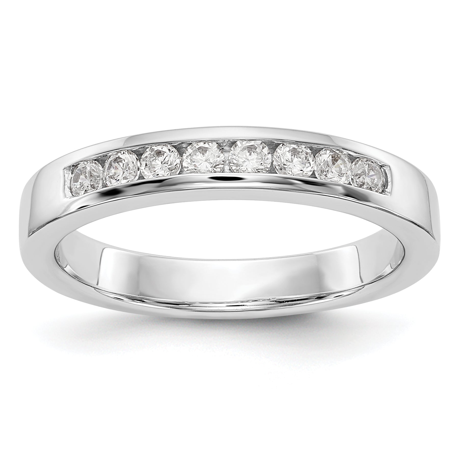 Item Specification: Material: Primary - Purity:14K Finish:Polished Stone Type_1:Diamond Stone Quantity_1:8 Plating:Rhodium Band Width:3.4 mm Stone Setting_1:Channel Stone Weight_1:0.039 ct Stone Clarity_1:I1 (AA) Size (Minimum):6 Size (Maximum):8 Sizing Adjustment Increment:0.25...