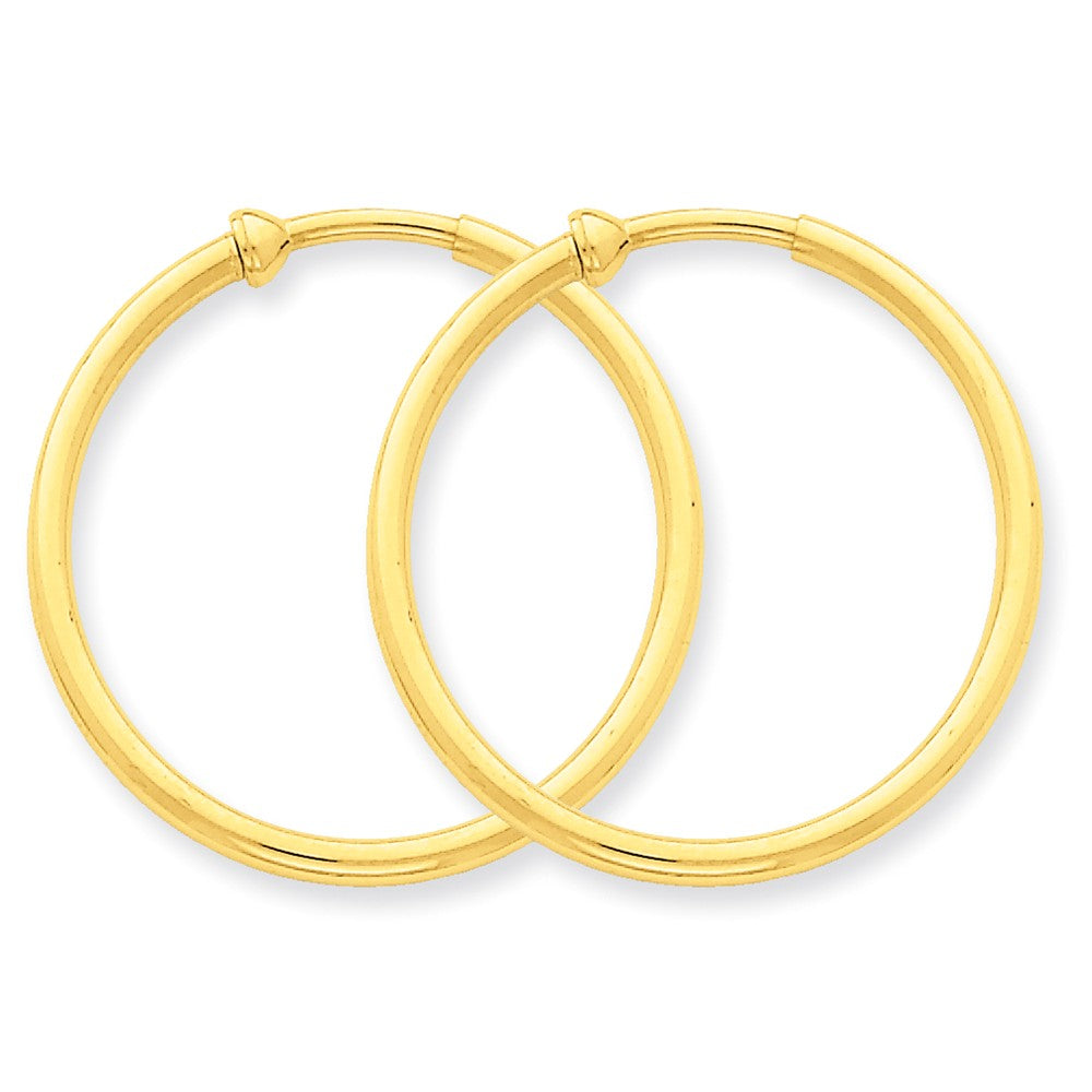 Item Specification: Material: Primary - Purity:14K Finish:Polished Length of Item:25 mm Feature:Hollow Manufacturing Process:Tubing Material: Primary:Gold Thickness:2 mm Width of Item:2 mm Product Type:Jewelry Jewelry Type:Earrings Sold By Unit:Pair Material:...