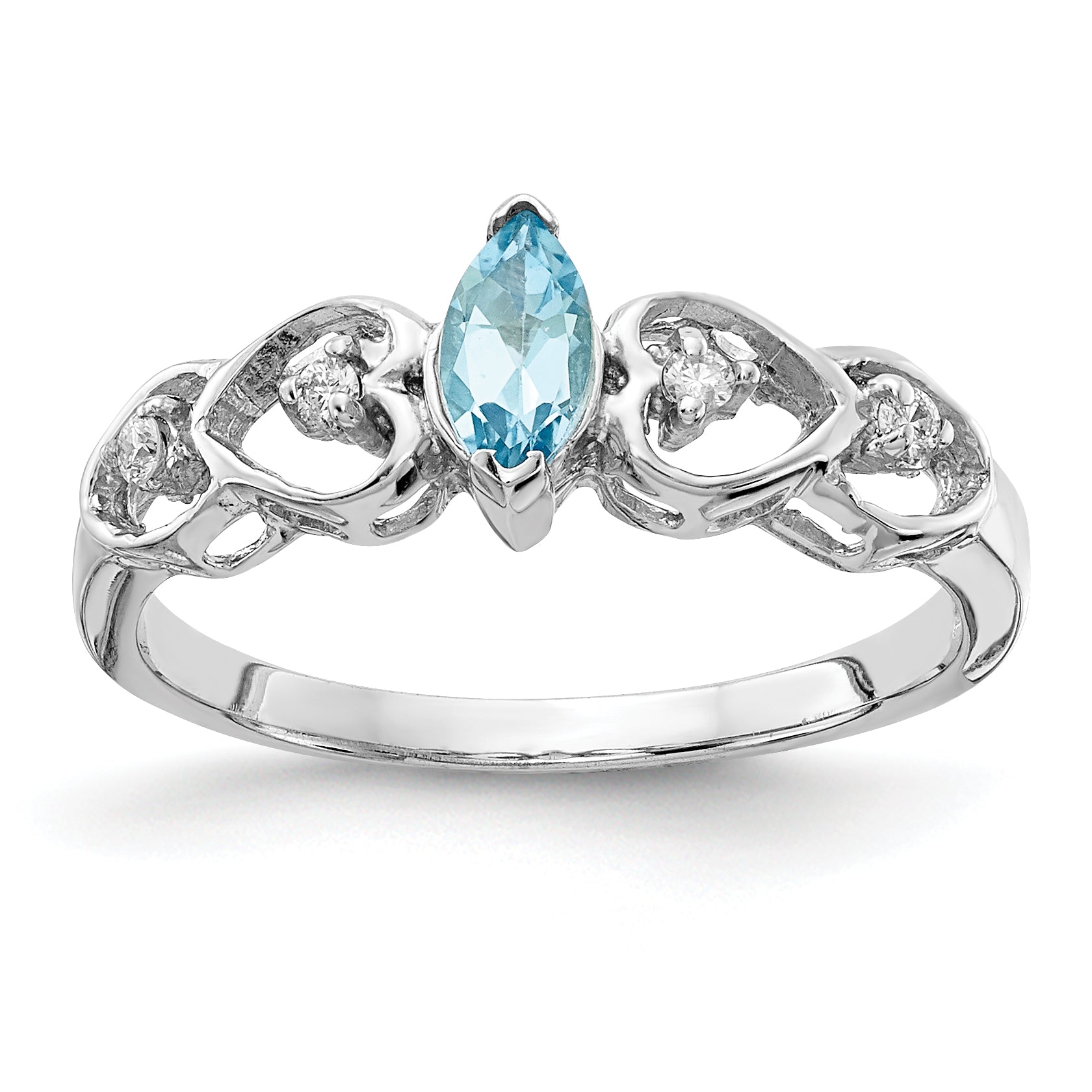 14K White Gold 6x3mm Marquise Blue Topaz AA Diamond ring