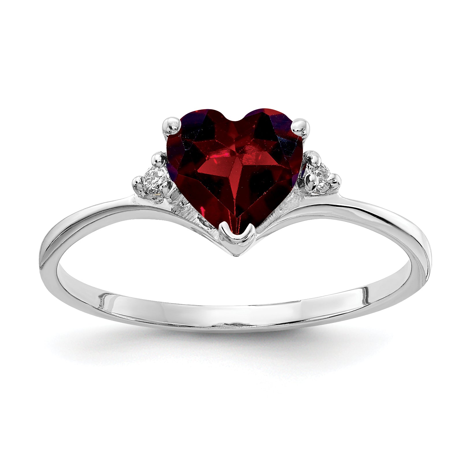 Item Specification: Material: Primary - Purity:14K Stone Type_1:Garnet Stone Type_2:Diamond Stone Color_1:Red Stone Quantity_1:1 Stone Quantity_2:2 Plating:Rhodium Stone Weight_1:0.800 ct Stone Weight_2:0.015 ct Stone Clarity_2:VS2/SI1 (VS) Material: Primary:Gold Stone Shape_1:Heart...