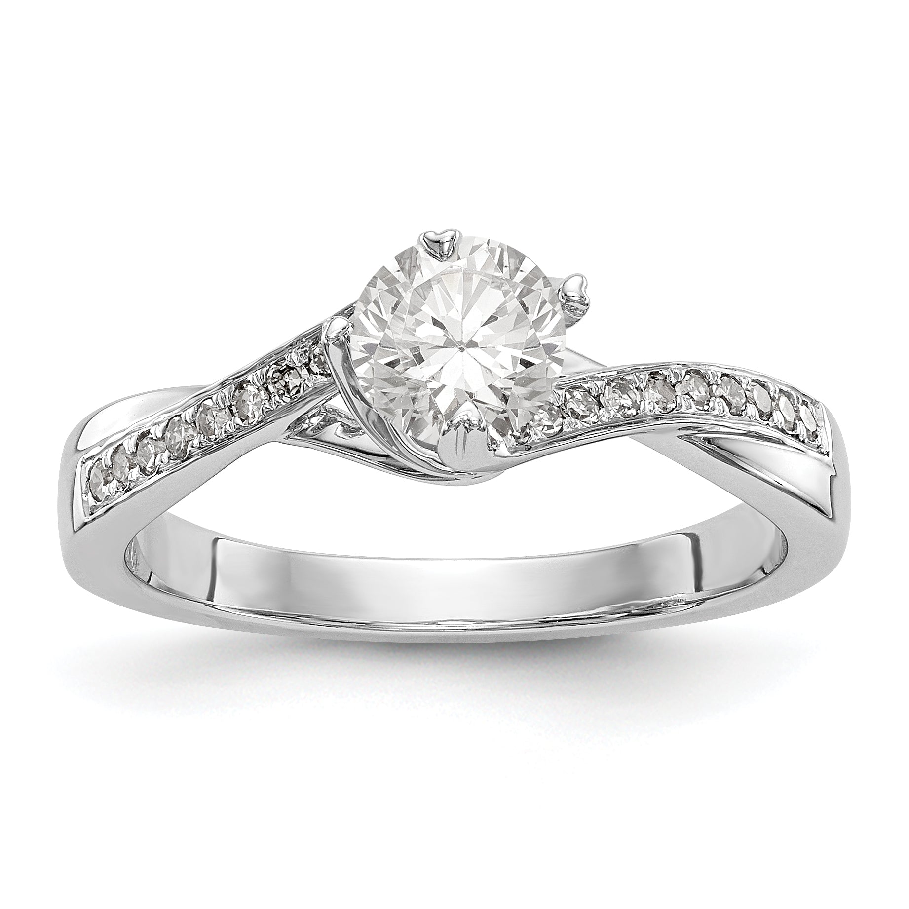 14K White Gold By-Pass (Holds 1/2 carat (5.00mm) Round Center) 1/10 carat Diamond Semi-mount Engagement Ring