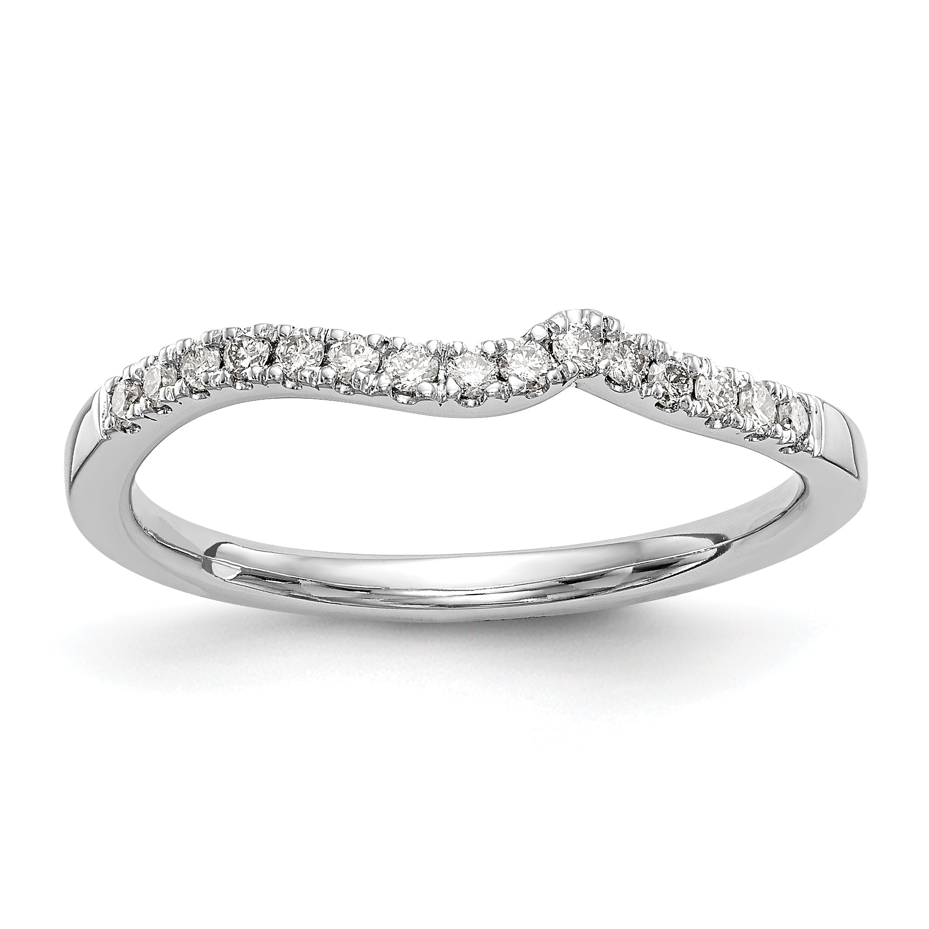 Item Specification: Material: Primary - Purity:14K Finish:Polished Stone Type_1:Diamond Stone Quantity_1:15 Plating:Rhodium Band Width:1.5 to 1.6 mm (tapered) Stone Weight_1:0.011 ct Stone Clarity_1:I1 (AA) Size (Minimum):6 Size (Maximum):8 Sizing Adjustment...