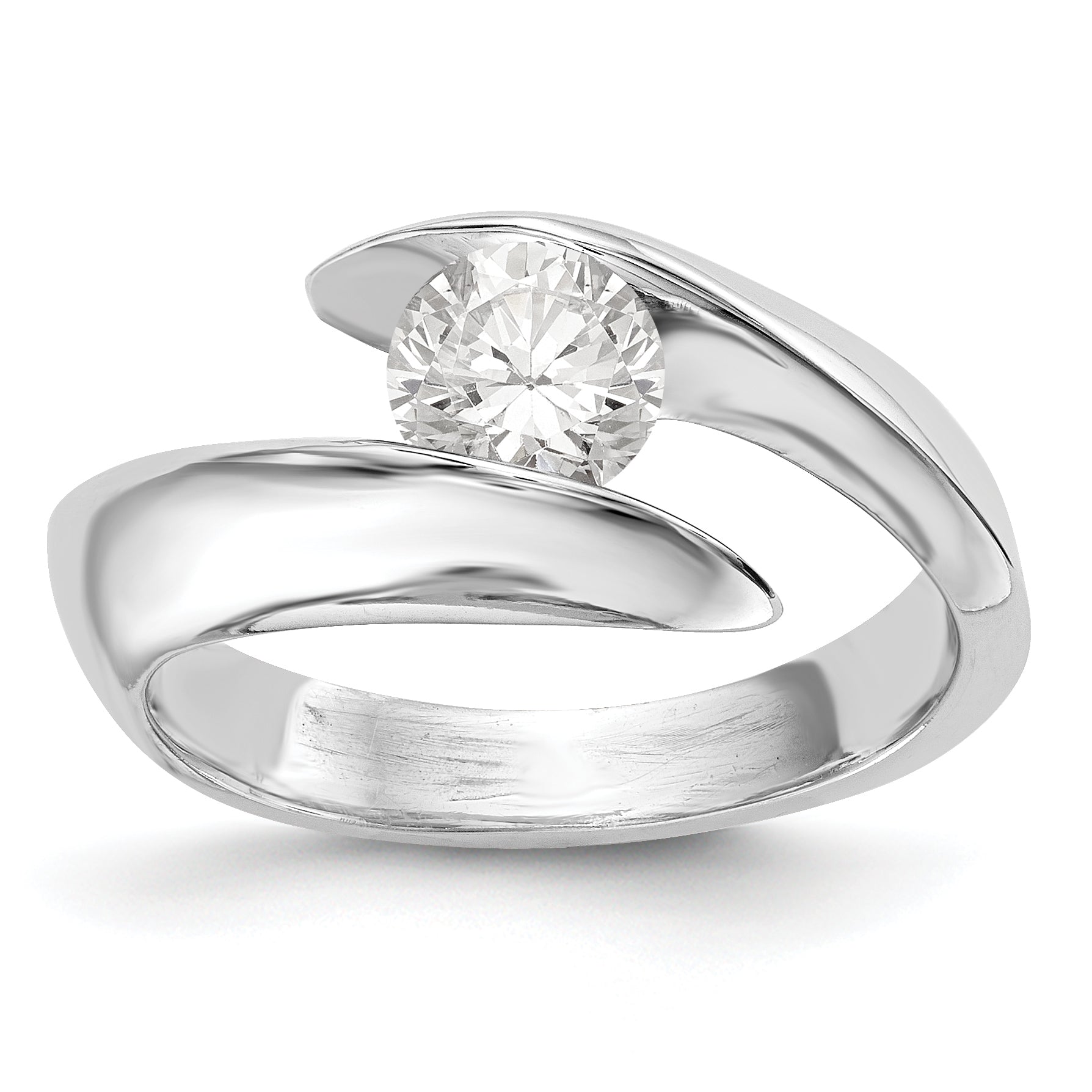 14K White Gold (Holds 1/2 carat (5.2mm) Round) Half-Bezel Bypass Solitaire Engagement Ring Mounting
