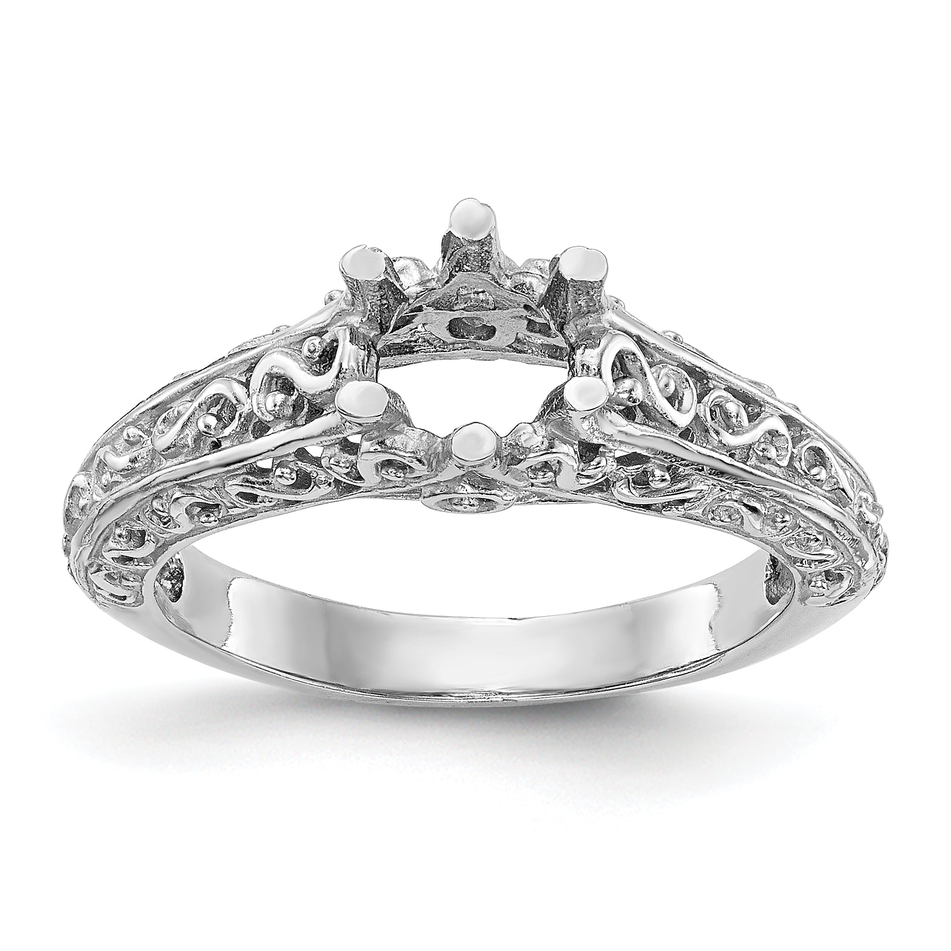 14K White Gold 3/4 carat (5.80 mm) 6-Prong Vintage Round Solitaire Engagement Ring Mounting