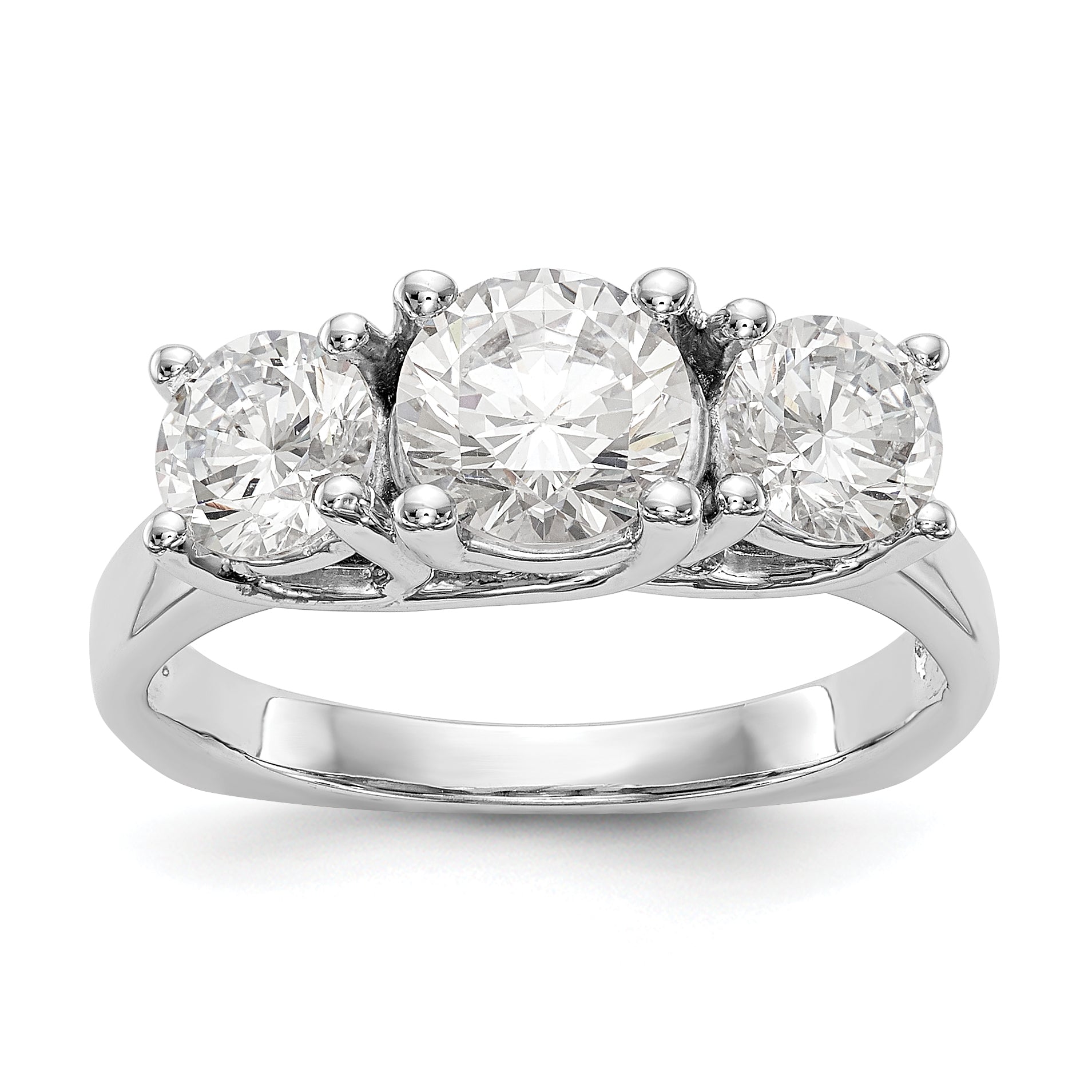 14K White Gold 3-Stone (Holds 1.25 carat (7.00mm) Round Center and (2-5.7mm) Round Sides) Engagement Ring Mounting