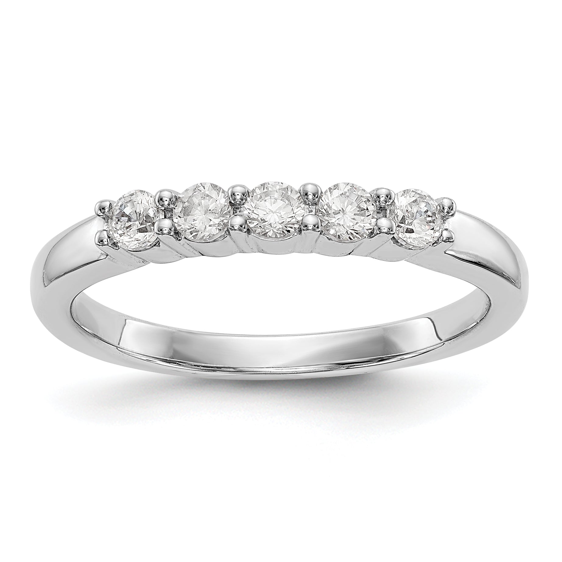 14K White Gold 5-Stone Shared Prong 1/3 carat Complete Round Diamond Band - 7