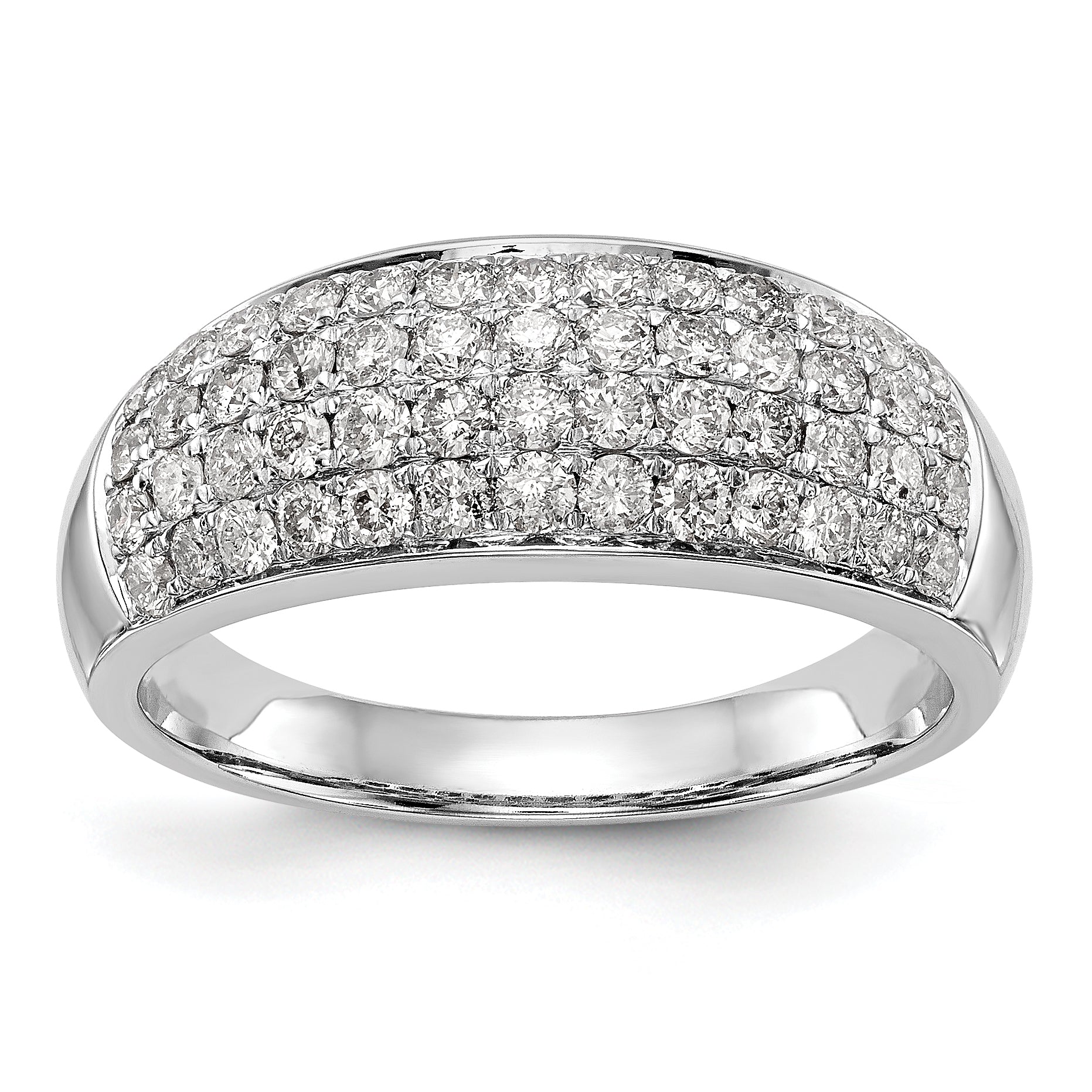 Item Specification: Material: Primary - Purity:14K Finish:Polished Stone Type_1:Diamond Stone Type_2:Diamond Stone Type_3:Diamond Stone Type_4:Diamond Stone Quantity_1:10 Stone Quantity_2:26 Stone Quantity_3:8 Stone Quantity_4:8 Plating:Rhodium Band Width:7.6 to 3 mm (tapered)...