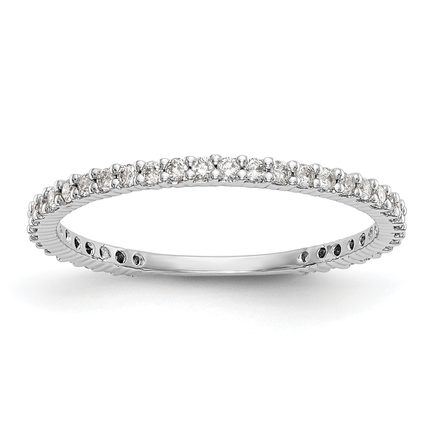 Item Specification: Material: Primary - Purity:14K Finish:Polished Stone Type_1:Diamond Stone Quantity_1:38 Plating:Rhodium Band Width:1.4 to 1.3 mm (tapered) Stone Weight_1:0.008 ct Size (Minimum):6 Size (Maximum):8 Sizing Adjustment Increment:0.25 Feature:Solid Manufacturing...