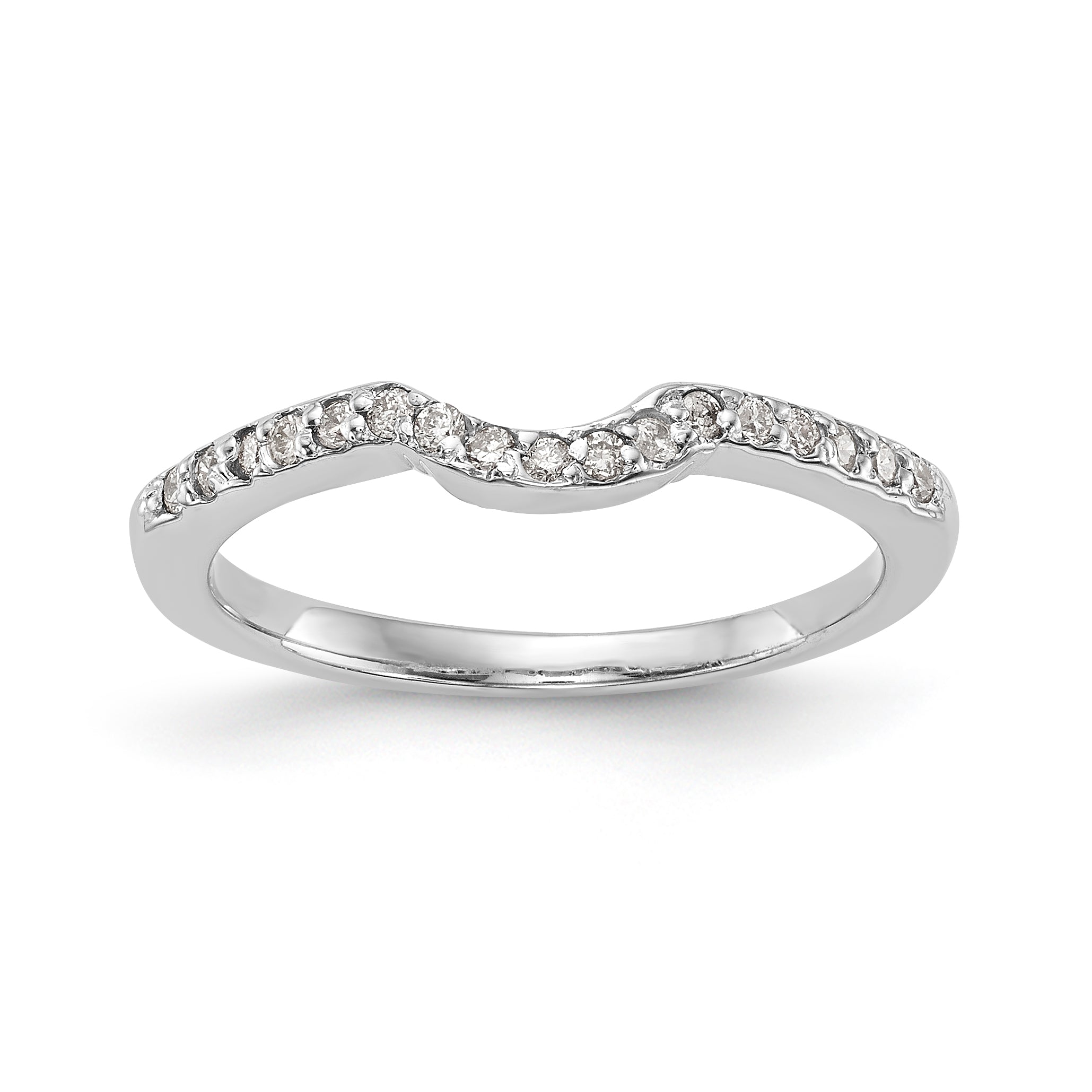 14K White Gold 1/8 carat Diamond Contoured Complete Wedding Band