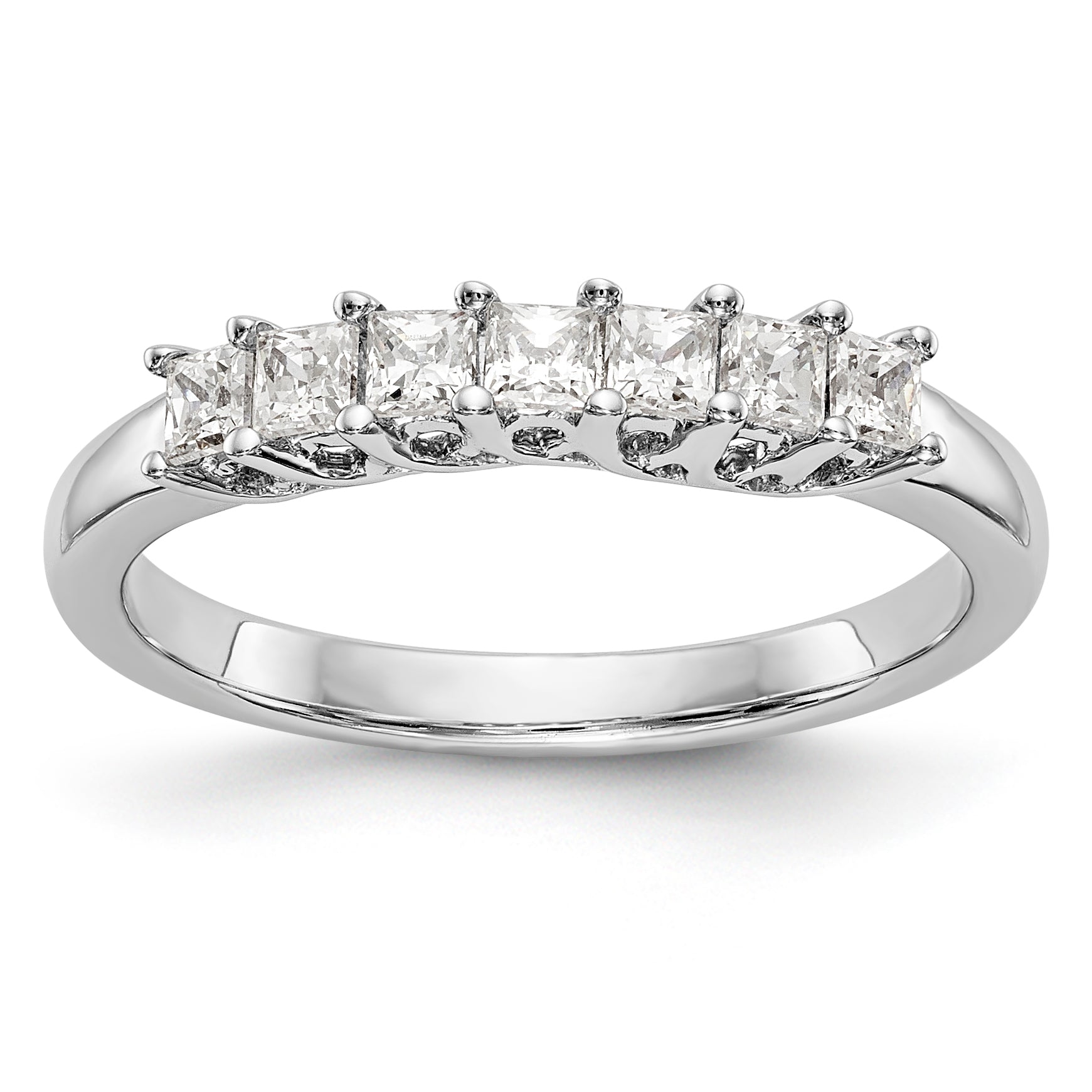 14K White Gold 7-Stone Shared Prong 1/2 carat Complete Princess Diamond Band - 7