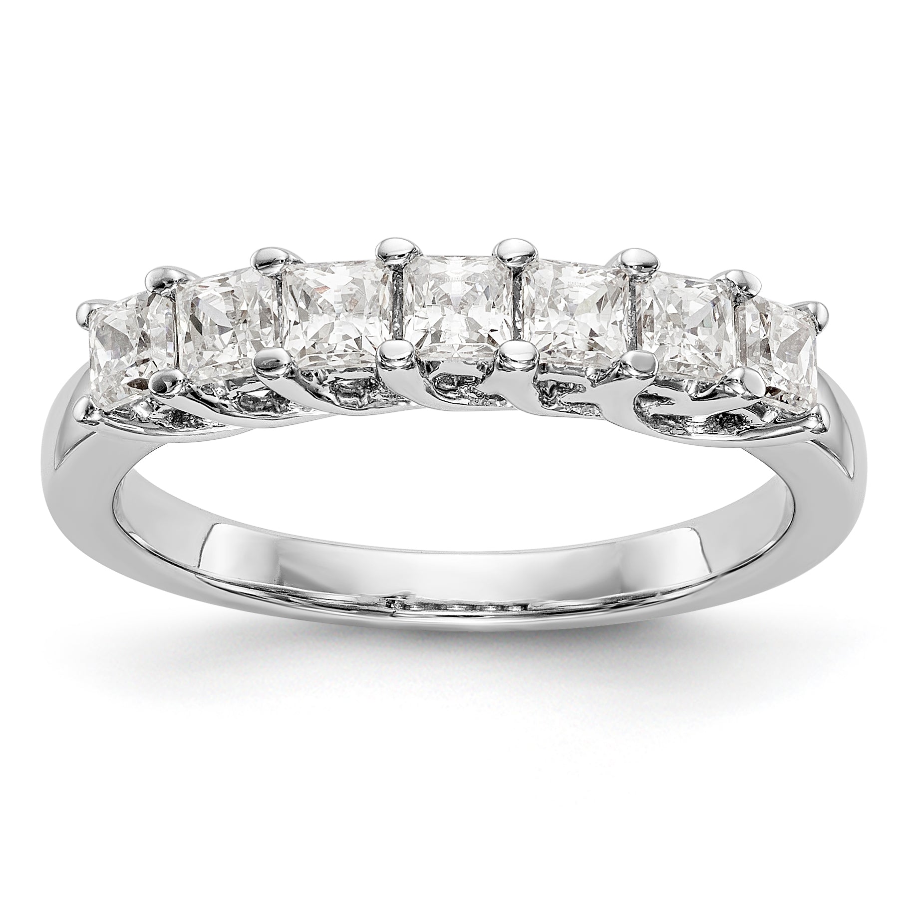 14K White Gold 7-Stone Shared Prong 1 carat Complete Princess Diamond Band - 7